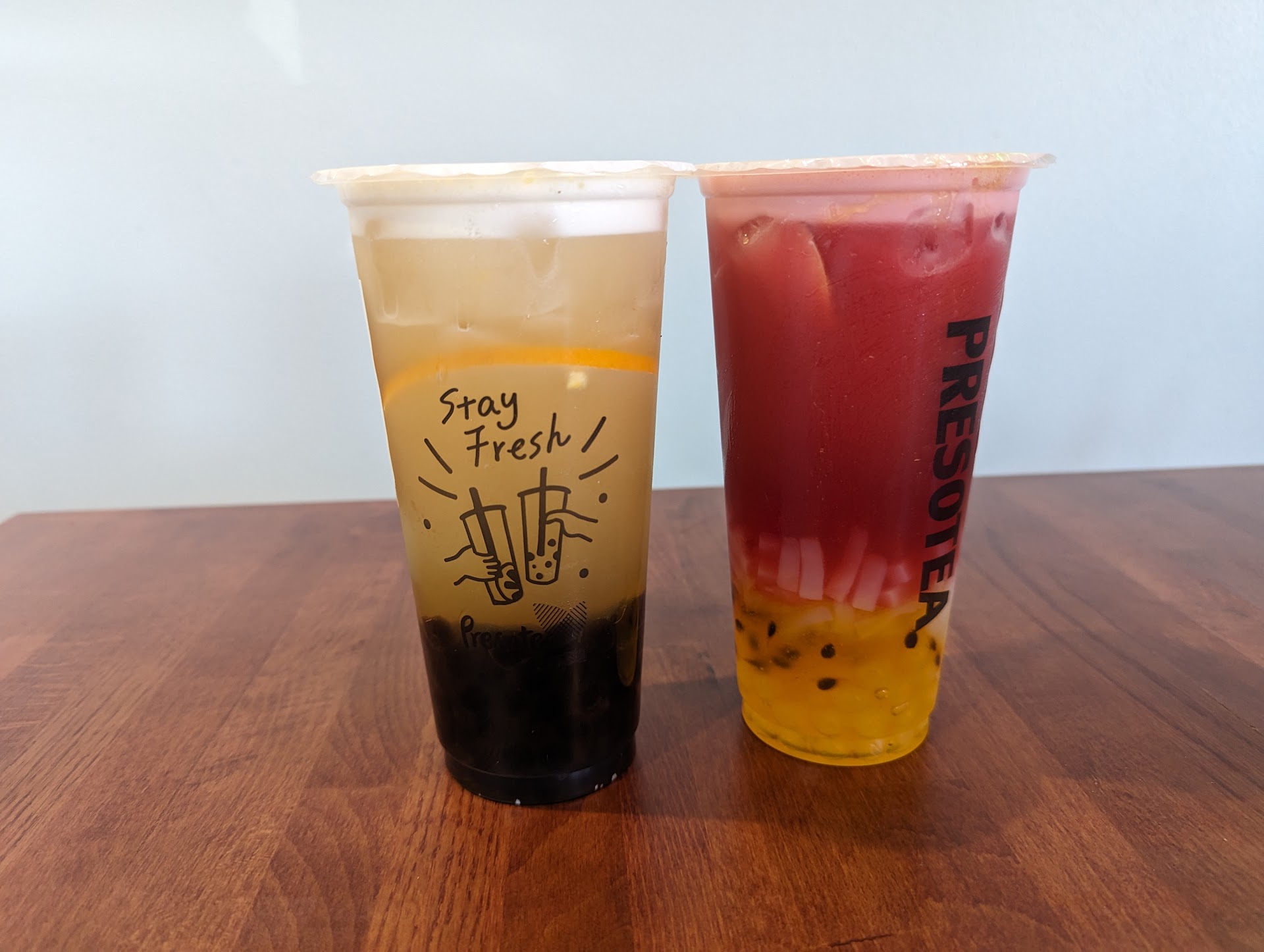 Presotea is a Taiwanese teahouse that specializes in fresh, made-to-order tea drinks. They offer a wide variety of tea drinks, including milk tea, fruit tea, and iced tea. They also offer a variety of toppings, such as boba, tapioca pearls, and pudding.