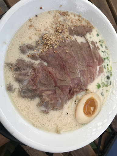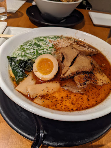 I ordered the black edition ramen with chashu both times I went, and both times I was unsure of whether I even received the right bowl, because not only did the broth not have the black appearance I've come to expect from regularly ordering black edition ramen at multiple different ramen shops (including Rakiraki), but it didn't even look dark at all (it was more of a weird speckled orange-brown). And don't even get me started on the chashu: the "chashu" was essentially just thick chunks (yes, chunks) of pork that were chewy (literally the polar opposite of how chashu is supposed to be prepared) and unflavorful, which is an absolute crime because I LOVE well prepared chashu. It might be hard to see in the picture just how thick some of the pieces of chashu were, but I would honestly compare it more to the experience of eating a piece of well done steak. I thought it may have just been a fluke the first time I ordered it here, but after the second time being the exact same experience, I've determined that it's just the way it's prepared here.