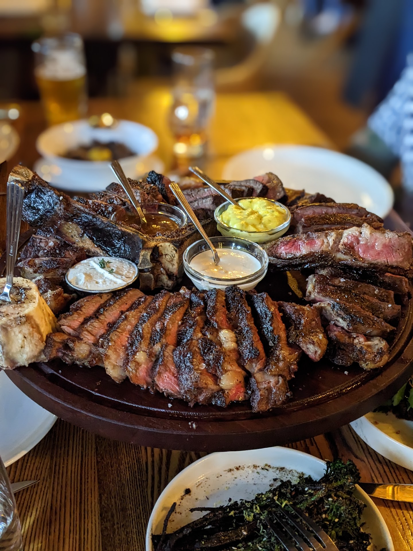 Our group of five opted for the Executive Platter and the Bullseye Ribeye with the Potato Au Gratin, Mushrooms, Broccolini, Carrots, Asparagus, and an a la carte, half lobster. The steaks were incredible with some tasty bone marrow and sauce accompaniments. The Bullseye Ribeye was the highlight, but all of the steaks were delicious. The sides were excellent, seriously nothing missed in this meal.
