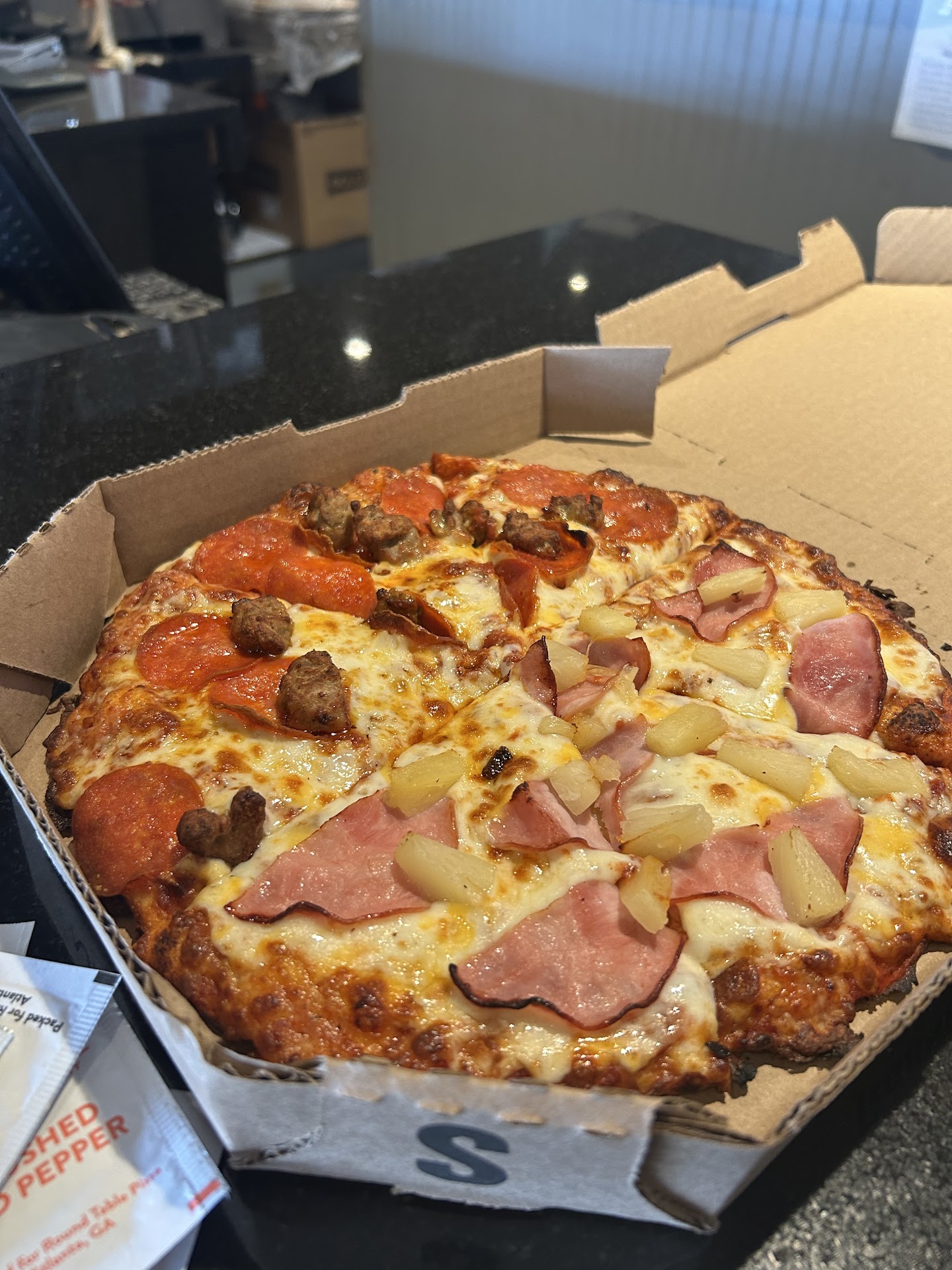 Read moreFor customer service over the phone I’ll give 5 stars but the pizza came very cold and dry it was 58 minutes after we called on a weekend dinner time .( I was told 35-45) We order from them only all the time we use $4 off coupon that’s maybe the reason we got a bed pizza. We order some topics but The one that was missing the most was artichoke It’s look like they were very cheap about how much they can add you can barely see it. We had to worm the pizza in the oven for another 10 minutes If I want to hit my own pizza i’ll go to the store and buy a frozen pizza Witch taste the same as this...