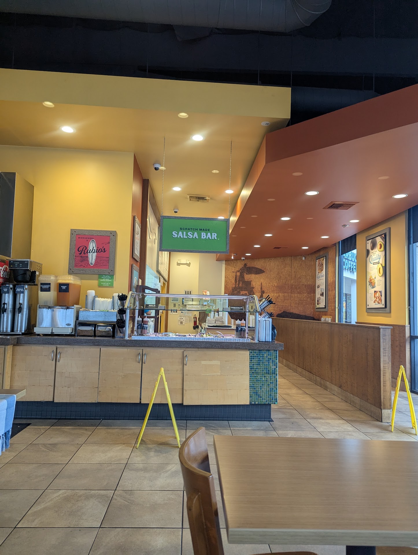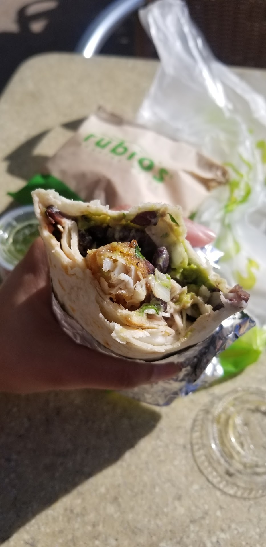 Just about every time we go to this Rubio's they mess up our order, they leave something out. Case in point, we went today I ordered a shrimp and bacon burrito to go, we got home and halfway through the burrito I noticed that they left out the bacon! My wife eats here more than I do and she knows to check her food before she leaves because it happens to her quite frequently. How can this happen so much? We like Rubio's but unfortunately this is the closest and easiest Rubio's to get to. This food isn't cheap, so I expect them to get it right, what I paid for! Probably not going to eat...