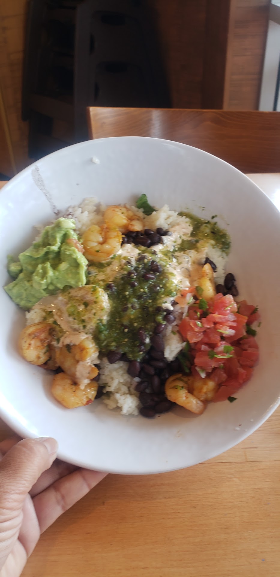 After our meal I approached her and said that in case she ever runs into this type of situation again, she should know that the contents in the chicken burrito are actually listed as being more than the shrimp burrito by 8 grams. Amazingly, she persisted in explaining that "she was just explaining what she saw". She did not however offer an apology until her co-workers started to listed in. She did not stop trying to explain her way out of it so I just left. As I walked away, I over heard her explaining the situation to the shift leader and another employee, which means she never told anyone about our experience.