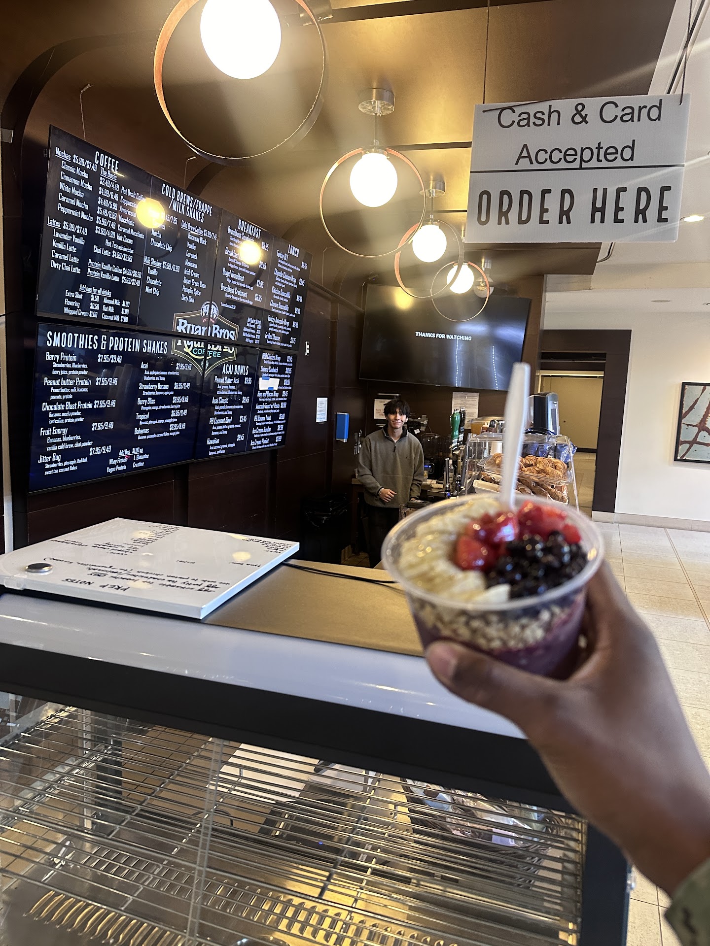 The food is hit or miss, Iāve tried a few different options and I definitely like the turkey BLT and I order tasty plain croissants from time to time but everything else is questionable. Every time Iāve had a cookie it was kinda stale, and I think the breakfast options would be better with fresher ingredients. The potatoes in the burritos have never been good the times Iāve tried them out. Just suggestions if you ever change the menu up! Other than those I enjoy the Ryan Brothers drinks and great customer service!!!