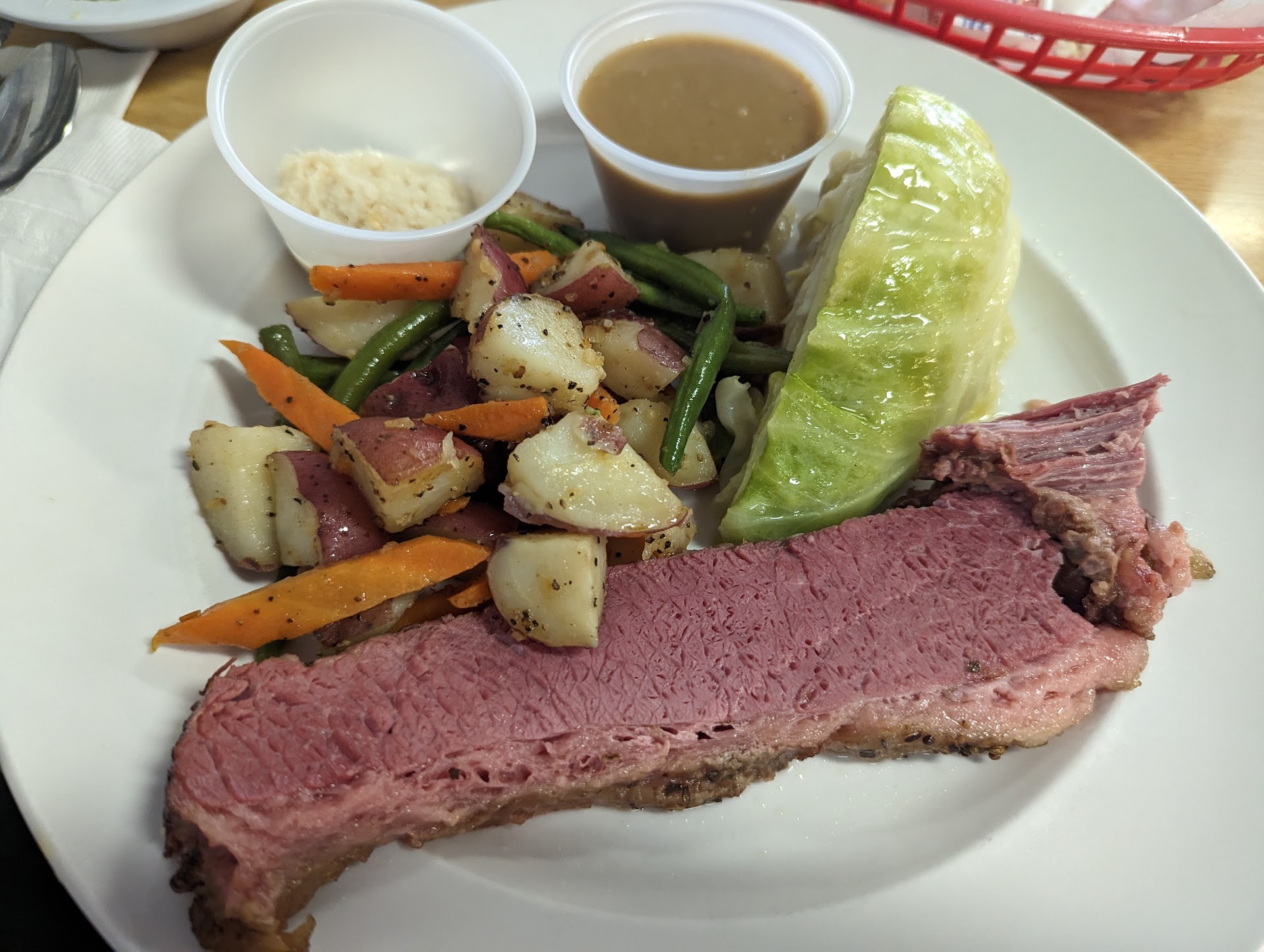 Excellent American comfort food diner. The food is tasty, the portions are fair, and the prices are reasonable. This is one of the few family owned restaurants that is not price gouging and cutting back on quality and portions to maximize profits. The atmosphere is as you would imagine from 50 years ago. Service is very fast and friendly, even during lunch time. Tried the Sunday turkey dinner special that includes soup, salad, and dessert. The chicken soup has lots of chicken and is very good. The blue cheese salad dressing is full of blue cheese chunks and seems homemade. The turkey was very tender and juicy, and the stuffing was surprisingly very tasty. The fried chicken breast meal was also very good, with a large tasty, juicy chicken breast with the perfect amount of batter to make it crispy even when drowned in gravy. The coconut cream pie was very good and not overly sweet. We will definitely be back to try the chicken pot pie. The peach pie and banana cream pie were very good, not overly sweet and packed with fruit. Update: Returned for Turkey dinner and Chicken Pot Pie meal specials. Got the Chocolate Cream Pie and the Coconut Cream Pie. Everything was excellent. Update: Got the Friday Meatloaf dinner special. We usually have low expectations for any restaurant's meatloaf, but this was excellent and not mostly filler. It tasted great. We also got the cherry pie. It had a perfect sweet and tart balance and an excellent crust. Everything is delicious here. Update: Got the Thursday Sirloin Tips dinner special. Very tasty. Tried the blueberry and pecan pies. Both were excellent and not too sweet. Another excellent dinner. Update: Got the St. Patrick's day dinner special and the pumpkin pie. Everything was very tasty. Update: Got the turkey dinner specials with cherry pie and coconut cream pie. Every was excellent. Our server, Virginia, is the best. She not only took our table's complicated orders without writing them down, but answered questions and made recommendations in between. We received everything 100% as ordered. She also checked several times to make sure everything was ok and asked if we needed anything. Update: Got the baby back ribs special. Fall off the bone tender and tasty! Update: Got the half chicken special and coconut cream pie. The skin on the chicken was perfectly crispy and the chicken was very tasty and juicy. Update: Got Sunday turkey dinner special and chocolate cream pie. Both excellent. Update: Got two Sirloin Tips Thursday specials. The meat was very tasty and tender. Got blueberry and cherry pies. Everything was excellent as usual. Update: Got the Corned Beef and Cabbage St. Patrick's Day special with a Cherry Pie dessert. Excellent! Update: Got the Mother's Day special Corned Beef and Cabbage with chocolate cream and cherry pies. Excellent! Update: Got the daily special Meatloaf dinners with chocolate cream and cherry pies. Excellent! Update: Got the daily special Roast Beef dinners, coconut cream and cherry pies. Excellent! Update: Got the Roast Beef daily special dinners. The beef was juicy and tender. Got Coconut Cream and Cherry pies. Everything was excellent! Update: Got a Turkey dinner, Fried Chicken dinner, Chocolate Cream pie, and a Strawberry pie. Everything excellent. Got a Turkey dinner, Fried Chicken dinner, Chocolate Cream pie, and a Cherry pie. All were excellent. Update: Got two Turkey dinners, Cherry pie and a Coconut Cream pie. Everything was excellent. Update: Got the corned beef special dinners with Chocolate Cream pie and a Peach pie to go. Everything was excellent! Update: Got the Easter special Turkey dinners with Chocolate cream pie and Fresh Strawberry pie. Everything was delicious except the strawberry pie. It had thinly sliced strawberries instead of whole and very few. It was mostly a red cornstarch gelatin hidden under a lot of whipped cream. Sadly it had an artificial aftertaste. Update: Got two Chicken Pie meals with Coconut Cream pie and Cherry pie. Everything...