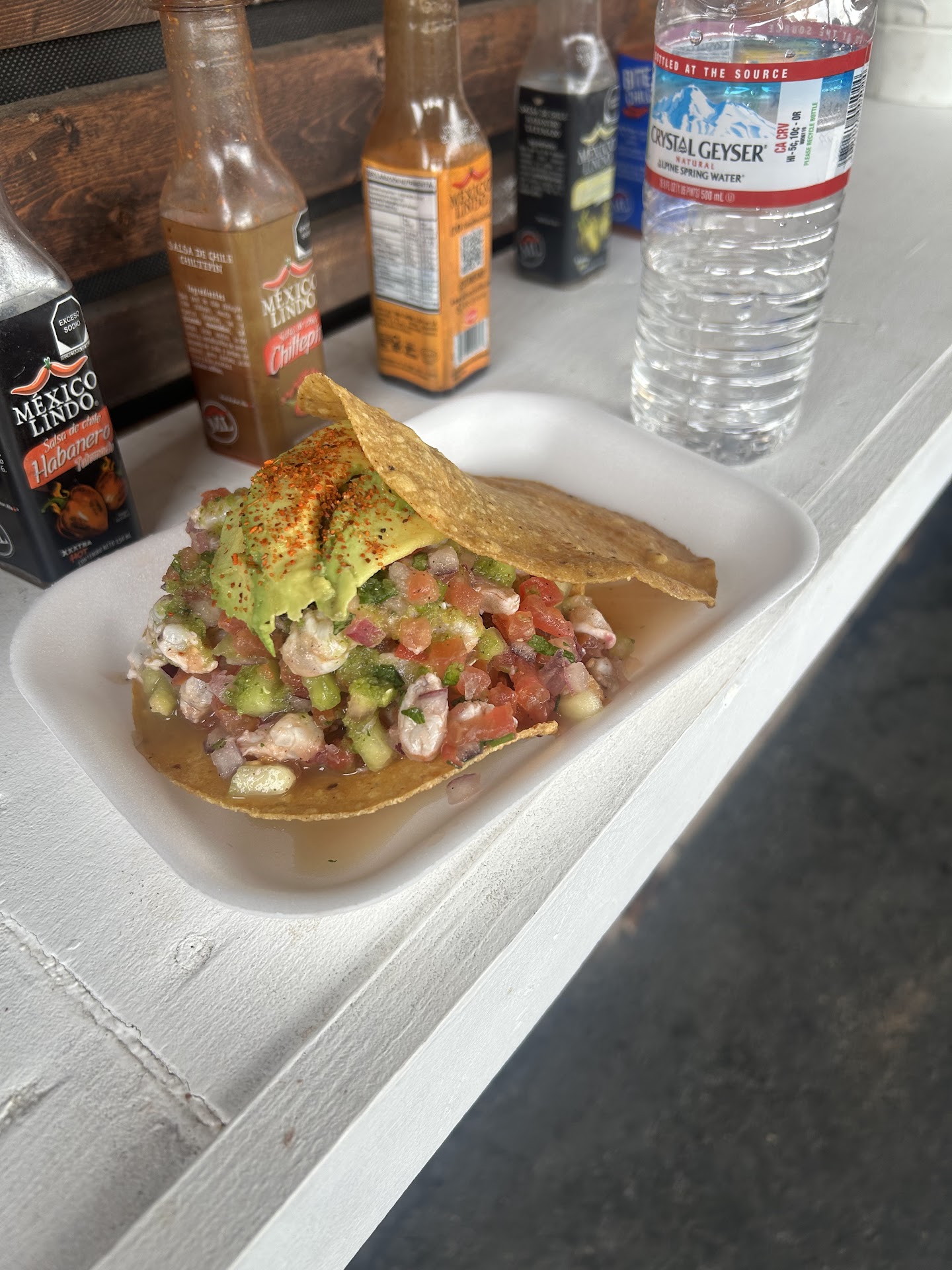 Read moreI just had half of my mouth numbed up and I couldn’t really swallow very well on one side. So I picked something easy to eat. And I ordered ceviche. But when I went to order I could tell the person that took my order was laughing bc I couldn’t really talk or swallow so idk if I was drooling in front of her or not. There’s also a $.59 cent card processing fee which she could’ve mentioned before I paid since I had cash. The ceviche by itself was less than $8 though but it’s not a lot of food like she was making it out to be. Kind of skimpy for almost $9 all together but it’s mid bc it wasn’t that good. I liked the idea of it and it looks good but it’s alright for what you get. Not too bad but not excellent. If I didn’t have this issue where I can barely swallow food I would’ve gone somewhere else. Still tho if you have cash this is one of the cheaper options esp as a food truck. There’s NO seating out here lol but they provided sort of a gazebo area where you can stand near tables with hot sauce and a tv with reggaeton playing in the background of these tone deaf dudes singing to the same predictable beat pretending to play golf while fantasizing about women...