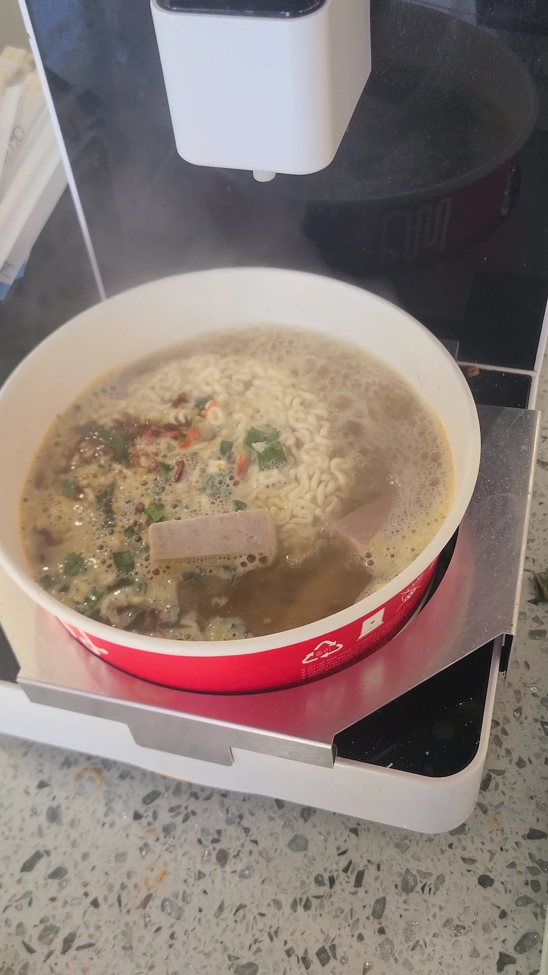 So I went here on a SUPER busy Sunday but I wanna talk in regards of that review of the burnt bowl as to what I believed caused it with MY experience over there. When cooking, (hot) water comes out the top into the bowl and the boiling point is also on the bottom of the bowl as same spot where the water was dispensed. The Stove does NOT heat up around the bowl evenly like mine in the video so to avoid a BURNT HOLE IN MY BOWL, I turned/rotated the bowl as I was cooking the ramen to have it evenly cook and NOT burn through it. Even then, Other customers were cooking their ramen quite normally and they didn't have issues from what I've seen