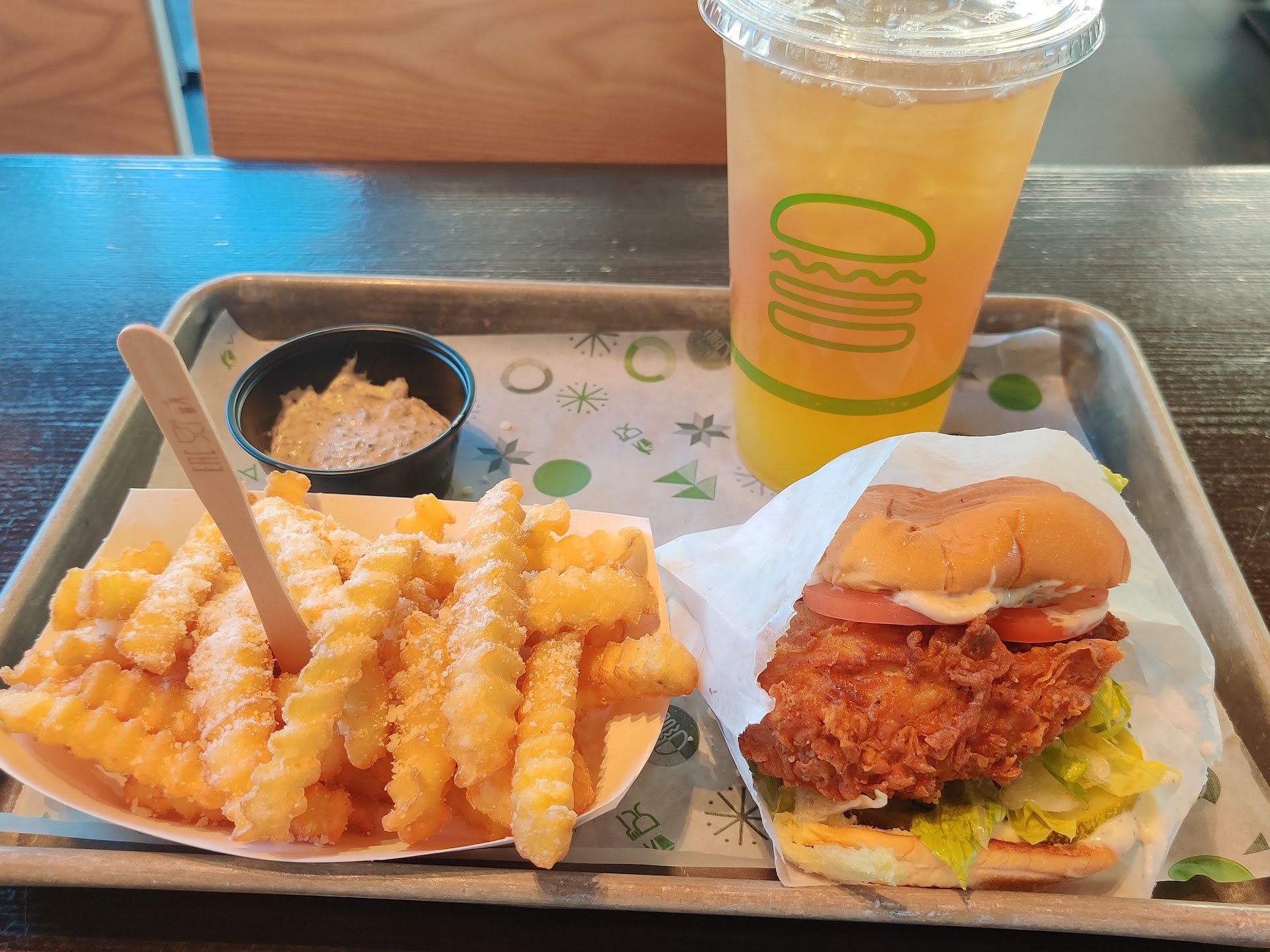 As expected from this famous New York-based chain, the prices are steep. However, they often run great promotions, such as free fries on Fridays or discounts on specific days. During my Sunday visit, they had a special where spending $10 earned a free Chicken Shack sandwich! With fries and a drink, I scored a satisfying meal at a great value. The staff was fantastic and even helped me input the promo code at the ordering kiosk.