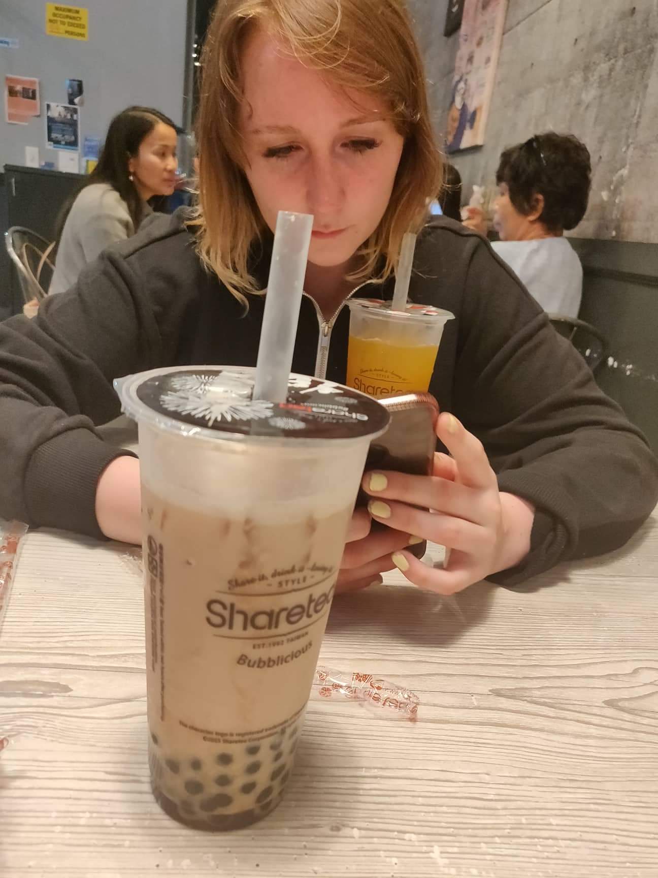 If was a pretty afternoon and service was quite slow. They make the drinks in batches, so even though both drinks were ordered on 2 separate consecutive orders, they fell into 2 different groups and came out a good 5-7...