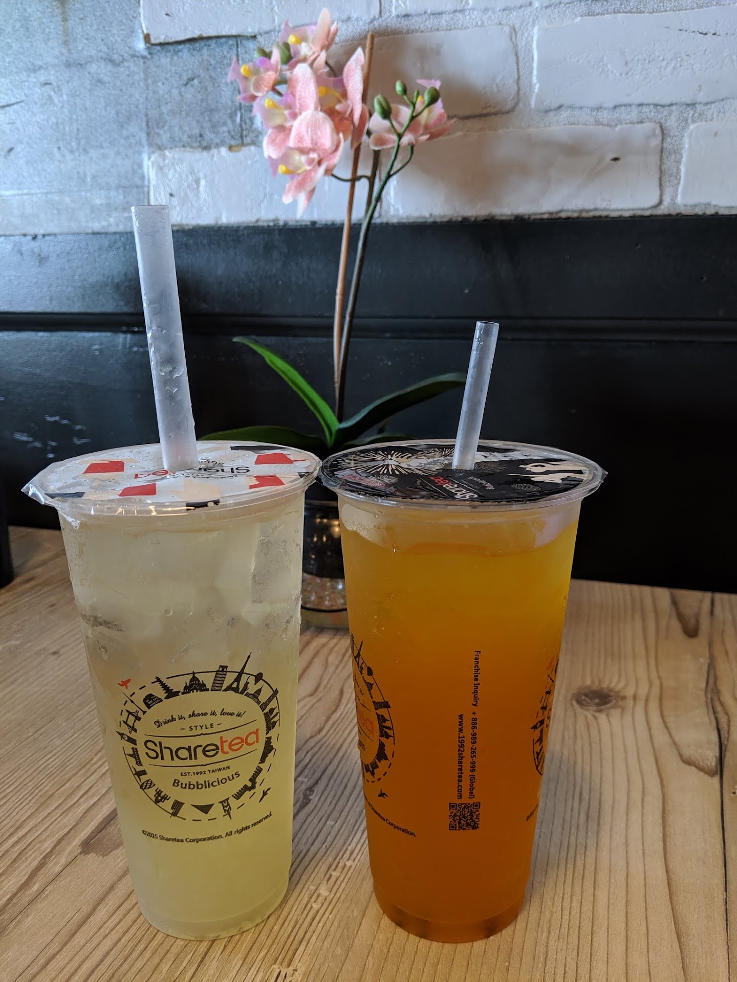 Went here on a hot afternoon with some friends and we ordered 2 of the fruit teas. One was the Honey Lemon with Aloe Vera and the other was the Mango & Passion Fruit Green Tea. Hadn't tried them before, but they sounded very interesting, so we went for it. The Mango one was regular sweetness but ended up being way too sweet. Felt a little like sugar syrup at one point. Picked the 50% sweetness for the Honey Lemon, which ended up being too less sweet. So we had to alternate sips between the two. I think 75% sweetness on both of them would have been perfect. The chunks of aloe vera in the Honey Lemon were a nice surprise though.
