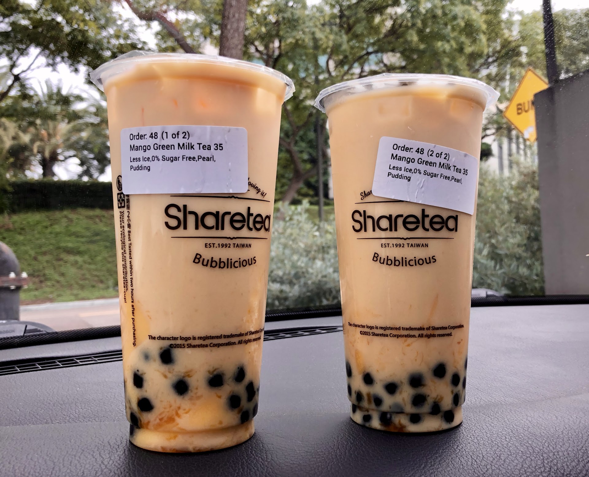 We've visited this place during the pre-grand opening, one evening and since that our favorite fruit drink, is mango, we tried the mango green milk tea, with pudding, regular boba, zero sweet and less ice. Only one option for the cup size, and to put in perspective, my guess it's about a little more than the venti of Starbucks. Although the staff gave us all four drinks as free, at that time, I can honestly say that this is one the best bobas we've had for years. The mango syrup marmalade is flavorful, matched with a soft texture of the milk and regular-sized boba, the right amount of sweetness and temperature; has us hooked.