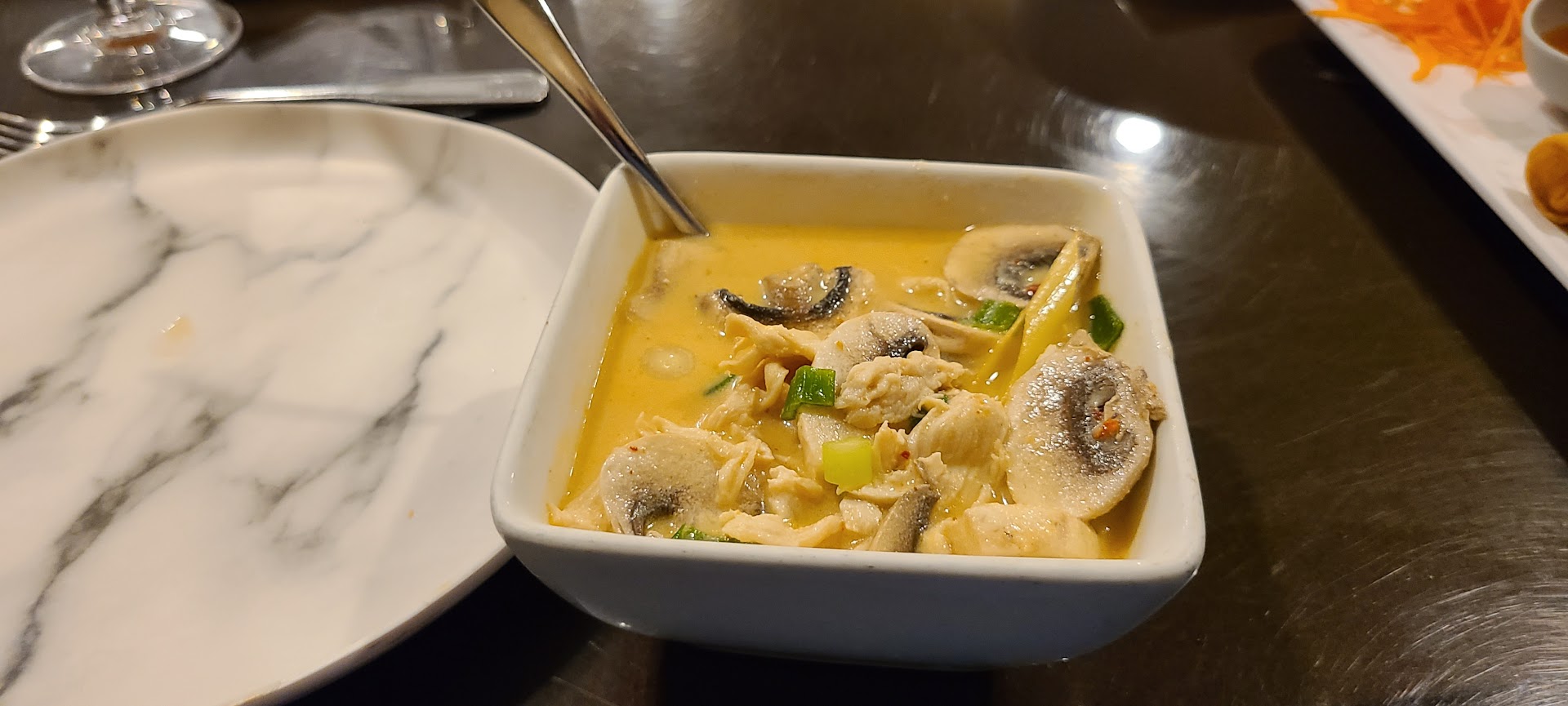Read moreOrdered take out while visiting Del Mar . Being very particular with Asian foods , I tend to order dishes that can’t be messed up too bad at places I know little about . I ordered Thai fried rice with chicken ( Spice level 5) and chicken satay . First look I was impressed with the portion size . It was still not cheap for plain chicken fried rice ( 13.95) but I get it it’s California and it’s California price. The fried rice was probably one of the worst I’ve had . It was very bland and on top of it , the rice wasn’t even fried / mixed right !! There were literally a good chunk of plain white rice in it and overall the rice wasn’t cooked all the way - like hard half cooked rice grain . It was a waste of my money . The satays were decent .. but for 12.00 for 6 skewers I expected better quality . I gave two stars maybe it was a one-off incidence but I sure won’t be trying...