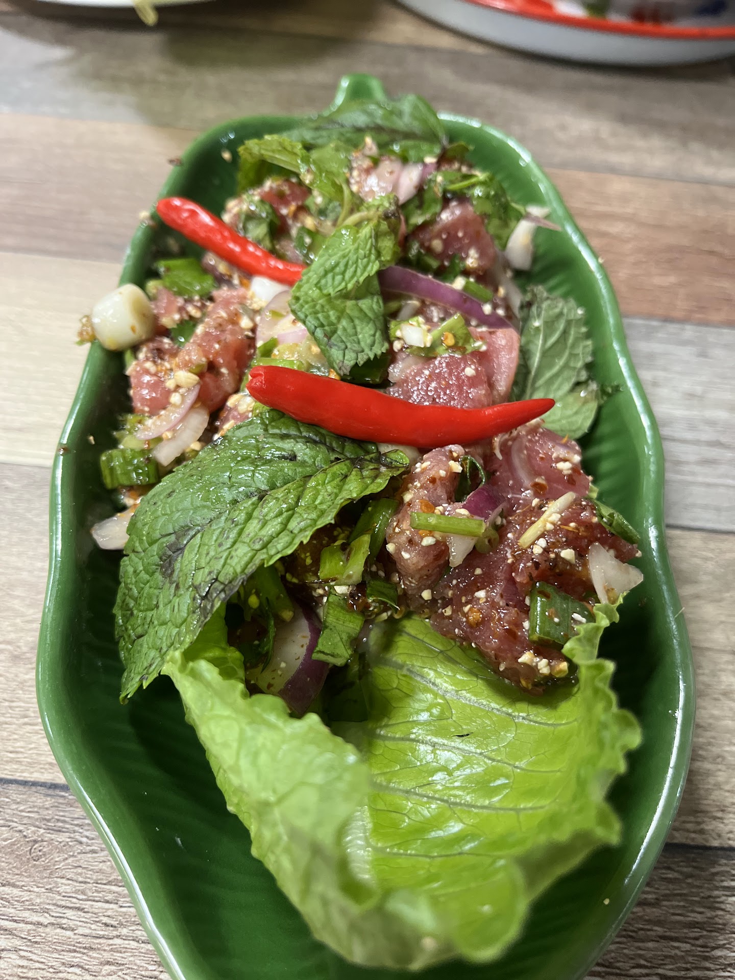 The Lao sausage was okay. I am not sure if it was supposed to be presented differently or not, but it definitely needs to be done traditionally. The casing was thin, and it doesn't have that snap that Lao sausage usually has. The filling just fell out, and the flavor was just not present. A solid 2/5.