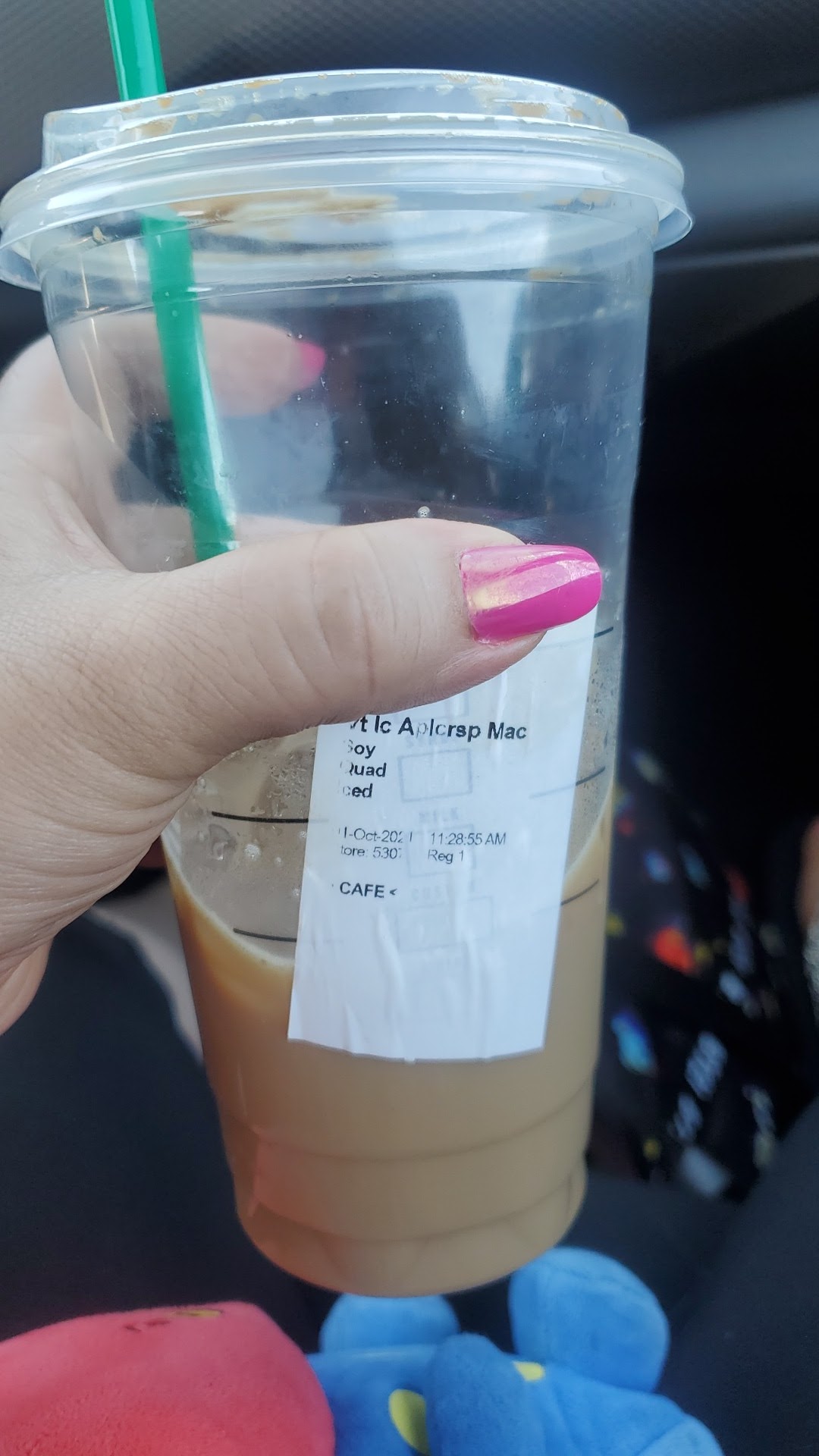 Read moreCame on a Saturday and ordered a venti drink with light ice. It wasn't that busy, however, my drink took awhile to make. Husband was next door at Einstein's and finished his meal b4 I came back to join him with my drink. My light ice drink was 1/2 cup filled with ice. I went back to complain and talked to Rhiannon. She was loud and argumentative. She said that was their standard of light ice. If I wanted less, I needed to specify EXTREMELY light ice. I said I have been to numerous Starbucks, and was given 1/4 - 1/3 cup of ice when I say light ice. Here, I'm given 1/2 cup of ice. I asked her would regular ice mean 3/4 cup of ice?!?! She did not apologize or offer to make me a new drink. Instead she argued that is their standard here. I went to a different Starbucks next day, and ordered same drink, light ice, and they made it perfectly. I will NEVER go back to this location and really wonder why Rhiannon is in the field of customer service. Read the other bad reviews for this location b4...