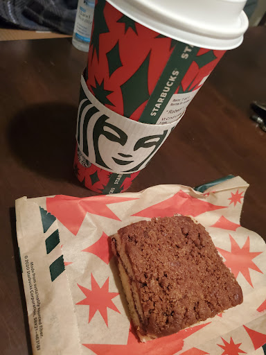 Read moreI'm rating Starbucks five stars because everytime I walk into any other coffee shop in this area, I get treated like a vagrant. Testy people asking me again and again "What do you want to order?" even after I stand aside and tell them I'm looking at the menu. My favorite experience is when the counterperson sternly told me "No public restrooms" as soon as I said "Hi". I am constantly getting the wrong drinks, such as no flavoring when I ask for it, regular milk instead of brevé and once, brewed coffee instead of a latté- I saw her pour it! And over and over, people take it upon themselves to explain to me that espresso has coffee in it. It doesn't have coffee "in" it! I will always choose chains over local businesses. The chains don't care who I am- they provide products and I pay for them. I have been loyal to Starbucks since 1998, and I'm happy to have a refuge from the Hipster Nazis who are afraid that I might disturb the integrity of their trendsetter...