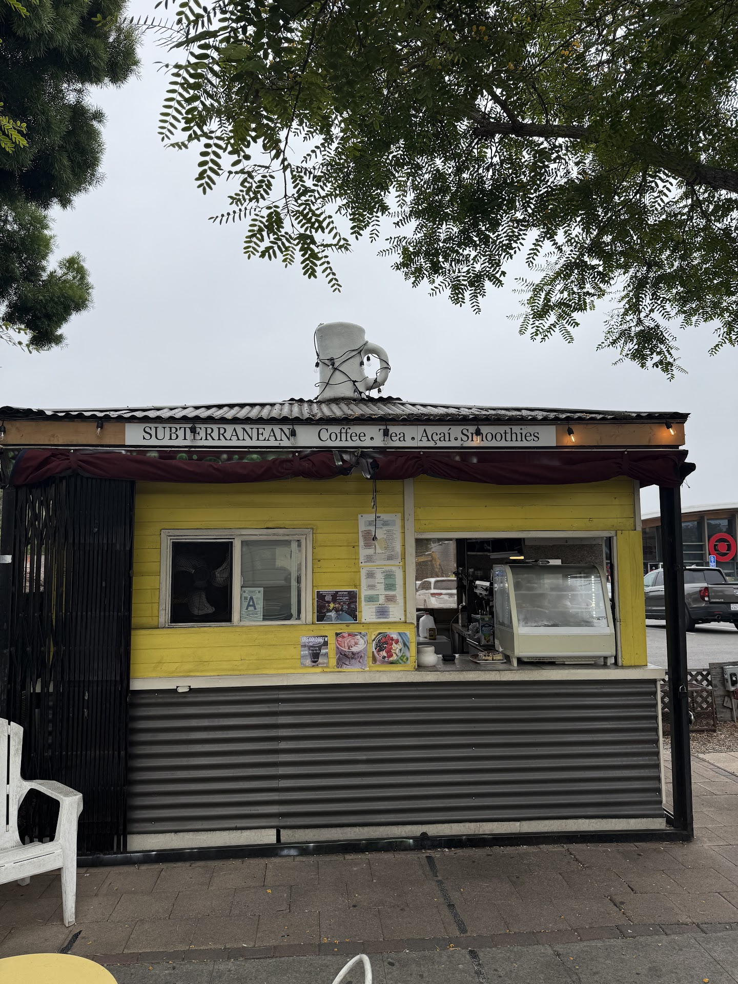 First time at this location of Suberranean Coffee today and it was super cute. Love the little yellow building and the fact that they have drive thru and walk up here. Plenty of outdoor seating on both sides.
