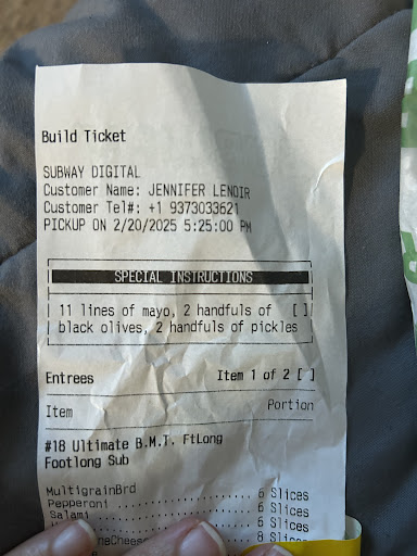 Read moreThis was a ridiculous ordeal and handled so unprofessionally and had she been kinder on the phone, I would have just spoken to her. Im reminded why we support our Submarina2 by NFCU! Or, occasionally to Firehouse or Jersey Mike's. Tried to give Subway a chance only to be reminded they are sloppy. They also need to change the app to Pepsi products as they no longer serve Coke products. The app is not clear. Yep, I dont like Pepsi and would NOT have added the $ to make it a deal!! Asked if they had also made sure the requested bacon was crispy, must still be in the cooker cause it wasn't on my sandwich.... DONT do mobile apps with...