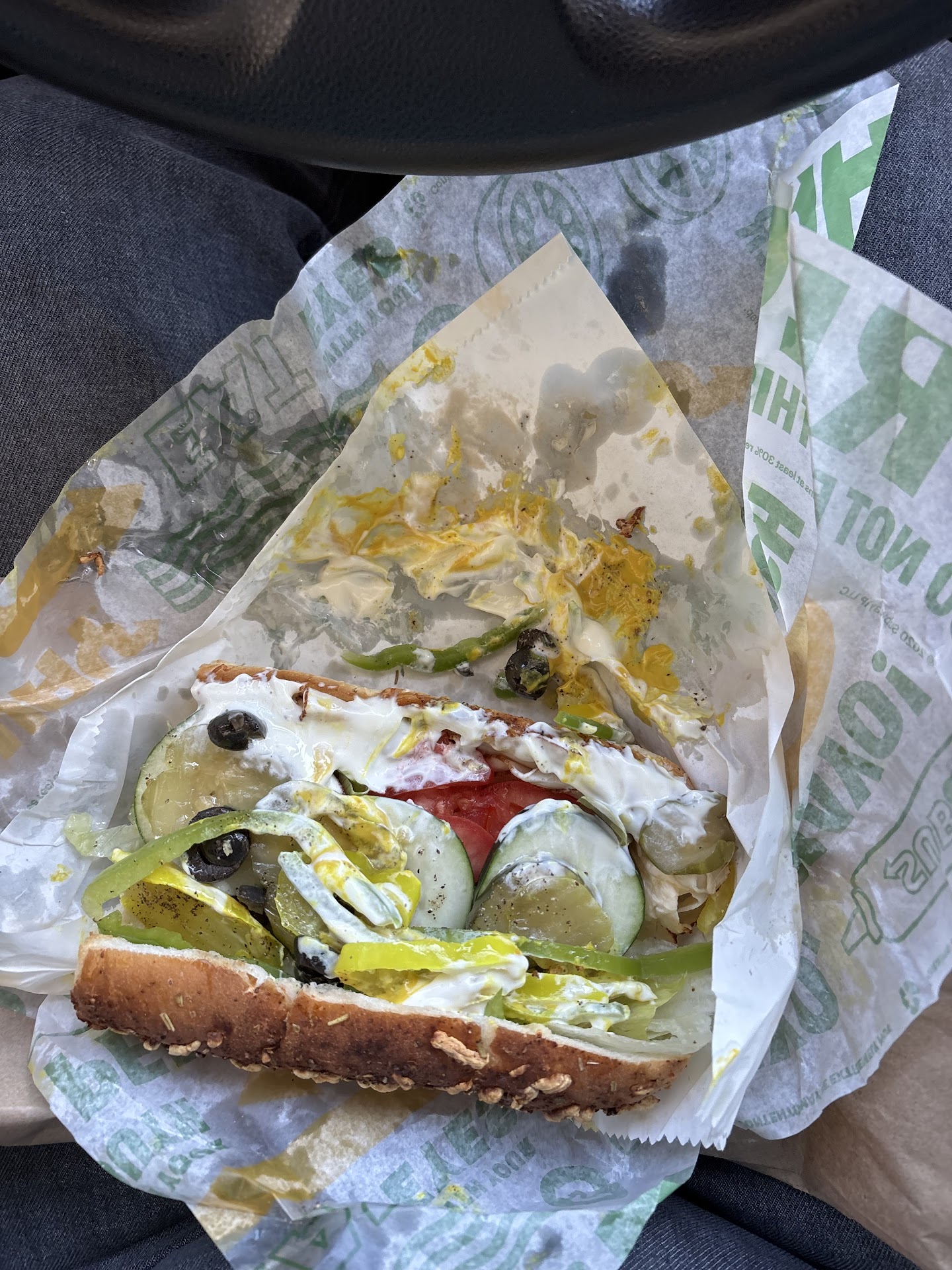 And the employee places the sandwich the wrong way in the paper wrap so when I opened the wrap the meat and sauces were all upside down and everying fell out of the bread. At this point to eat it Id have to use a fork or eat the sandwhich by pulling pieces off of it.