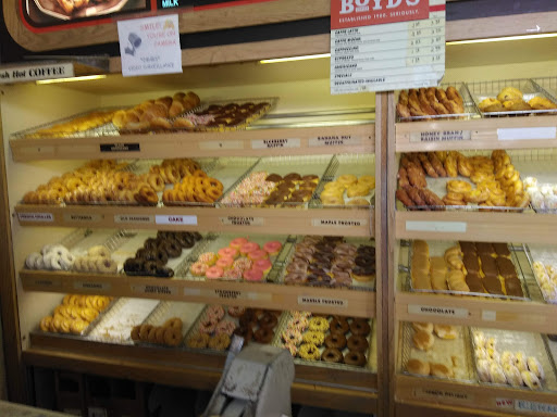 Read more99 cents a donut and there are soooo many flavors to choose from that it's ridiculously hard to not walk out with at least 3-4 donuts each time you visit. This place always has a friendly Filipina lady to greet you and take your order. I honestly don't like the idea of having donuts sit out without having protective glass around it like most donut stores, but each time I come in, there are never any flies or critters to make me doubt the cleanliness of their facility and quality of their donuts (unlike some bakeries that I've been to). My favorite donuts are the custard and jelly filled donuts but, really, I've tried every donut in this place and everything is always good. Since this place is open 24-hours, your late night cravings can always be...