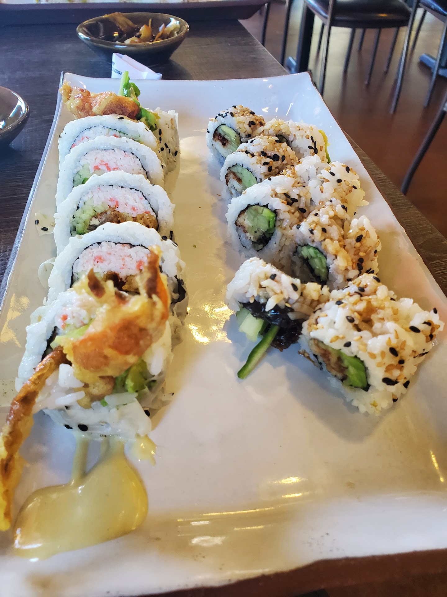Ā Ā Ā Read moreAfter I ate here, I wished I just stayed home and ate instant ramen. Perhaps my standards for sushi is higher than it should be for this location, but I prepared for some disappointment after I sat down and the floors were sticky, tables were sticky. We ordered 2 hand rolls, some nigiri, the chef choice sashimi plate and the shrimp/veggie tempura. The tempura was fine. The sushi was disappointing. The sashimi cuts were way too thick to taste good. The salmon sushi was WARM and now I'm just hoping I didn't get food poisoning. I would say the food gets a 2/5. Not the worst place we have had but definitely bottom 3. I felt nauseated after I finished eating here. The prices weren't that great either, pretty standard for good sushi but their food does not meet the expectation of what they charge. We spent $70 before tip. Service was okay. They didn't ever come to refill our waters even though my cup was empty. They just came to get our plates and give us our check and that was it. It wasn't even that busy, we had no wait to sit. The only plus is that there's outdoor seating if you wanted to come with a pet, and there's an ice cream place next door. I would 1000% never come back. So much regret...