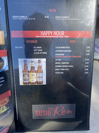 Read moreCame in on a Thursday evening around 6:30 pm. The restaurant didn't look particularly busy, and we were sat at the sushi bar. The person seating us gave us waters, menus, and then we heard nothing else. For at least 10-15 minutes we sat at the sushi bar with no service. The sushi chef gave us a half-hearted hello, and we were not helped otherwise. Waited for awhile & then decided to try the other sushi place down the street. This location changes frequently, and I will understand why, when Sushi Ren is inevitably replaced by something else. I'd rather give my business elsewhere. Karl Strauss is always a good bet in the area if you're looking for...