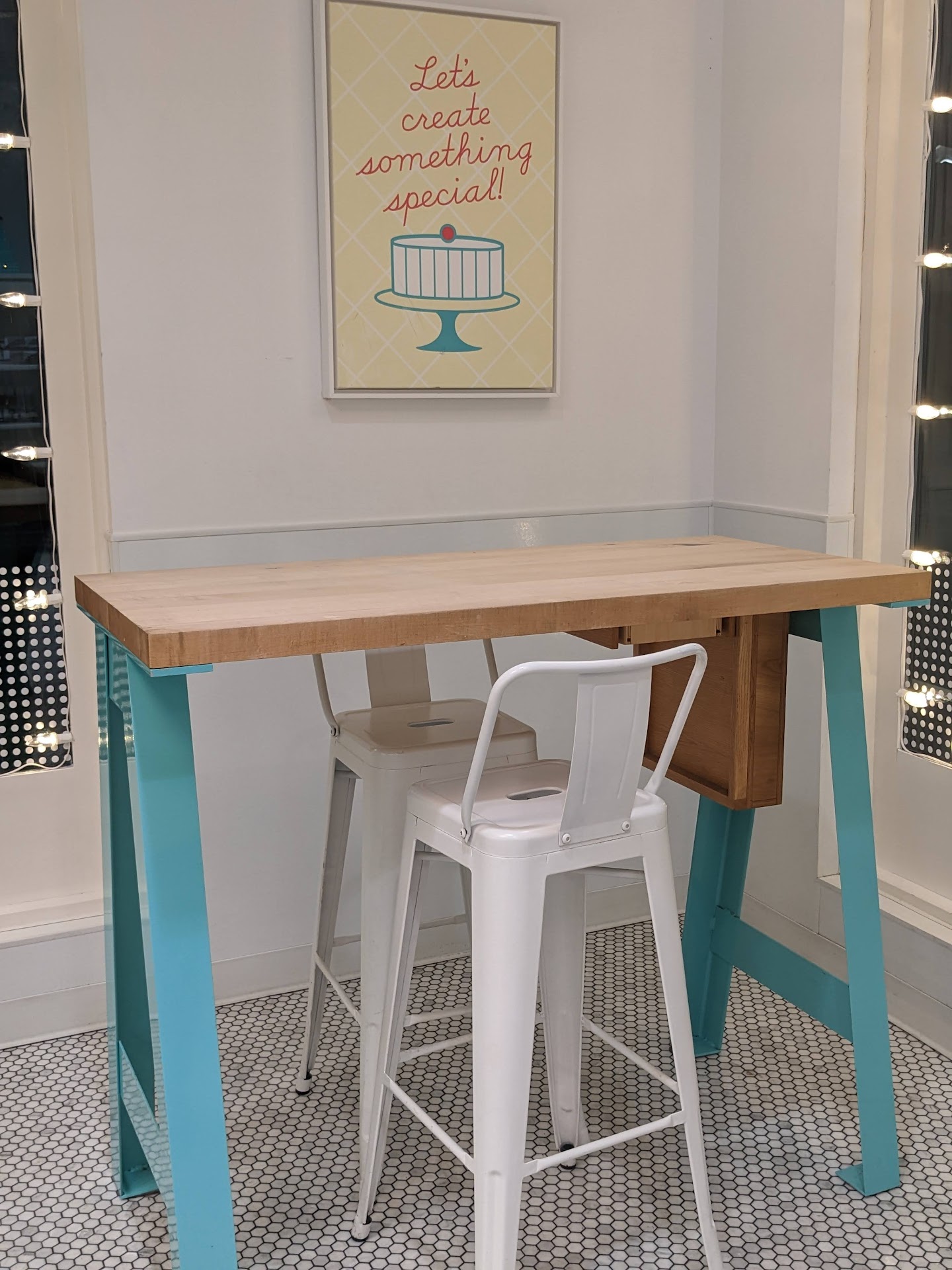 From the moment you pick up the box your cake is in, you can tell that this is a SERIOUS cake. You might think they left a cast iron baking pan in there, but no--that's just the weight of the cake itself. Then you get the cake home and open the box to find the most gorgeous looking cake you've ever seen. It's so perfect it looks like it must be made of the fondant--the most disappointing "food" ever to be put on a cake. But when you try it, you discover it is not at all fondant. It's just really thick and rich buttercream frosting, perfectly coated in a layer of colored sugar.