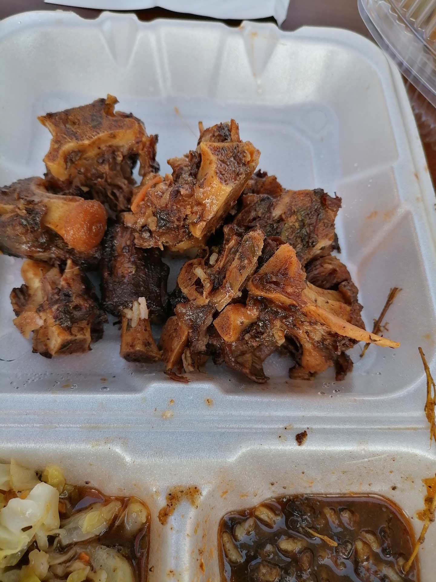 Read moreMy friend and I live in Mexico, but I'm from the east coast and very well versed in Jamaican cuisine. So, we were very excited to get some good Jamaican food while we were in town. Unfortunately this food fell flat overall. 7The worst was the oxtail; which almost everyone in line purchased. Maybe this was the problem. 70%of the oxtails in my platter were tough/undercooked, so I was unable to eat them. I don't know about y'all, but I'm used to my oxtails being so tender that they fall off of the bone. These oxtails needed another hour or 2 in the pot. We went at 5pm, so maybe these were from a new batch. Going earlier in the day might be better. It was very disappointing considering the prices.