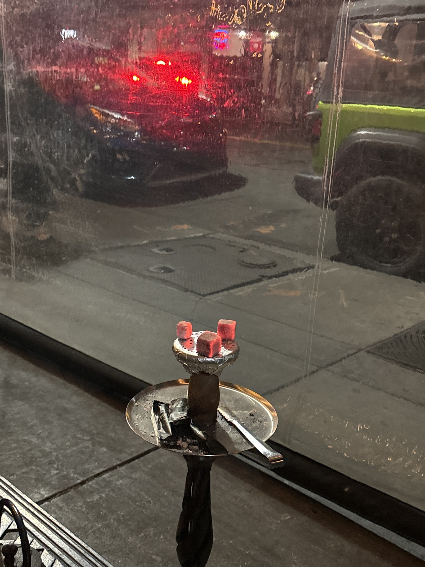 The biggest issue I have is the service. The staff is hit or miss. My last two visits were a couple of weeks apart and I found myself having to ask for things multiple times. We ordered tea and had to ask multiple times for sweetener and waited over 10 minutes before it was brought out. By this time the tea was getting cold, as we were sitting outside in the cold. When we asked for charcoal after ours dwindled down to tiny cubes, it took another 20 minutes before we got charcoal. It was over 45 minutes of smoking before the charcoals were finally replaced.