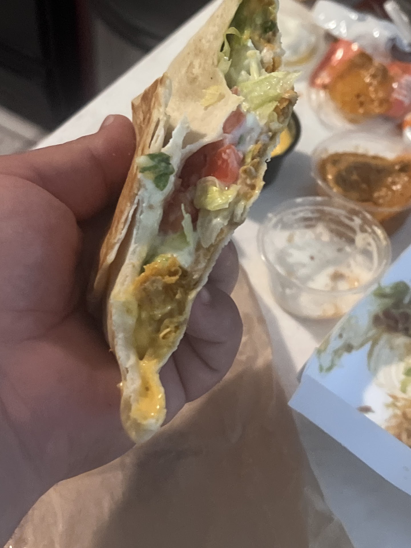 It's Taco Bell š Substandard tacos for cheap, but Taco Bell has done for Maxican food what McDonald's did for hamburgers. You get what you pay for most of the time.