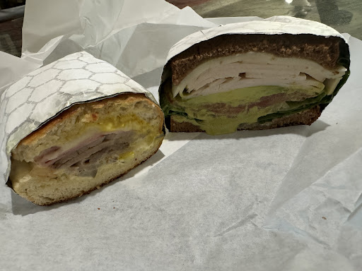 Read moreLove this place! Their Cuban sandwich is so good and they have so many sandwich options. they have quite a bit of seating inside with pretty wall art and they play nice music. staff is super friendly. And prices are low for the quality that you get. Highly recommend for sit down ortake out! This photo is half of a Cuban and half of the spicy turkey cilantro on toasted wheat sandwiches. Both...
