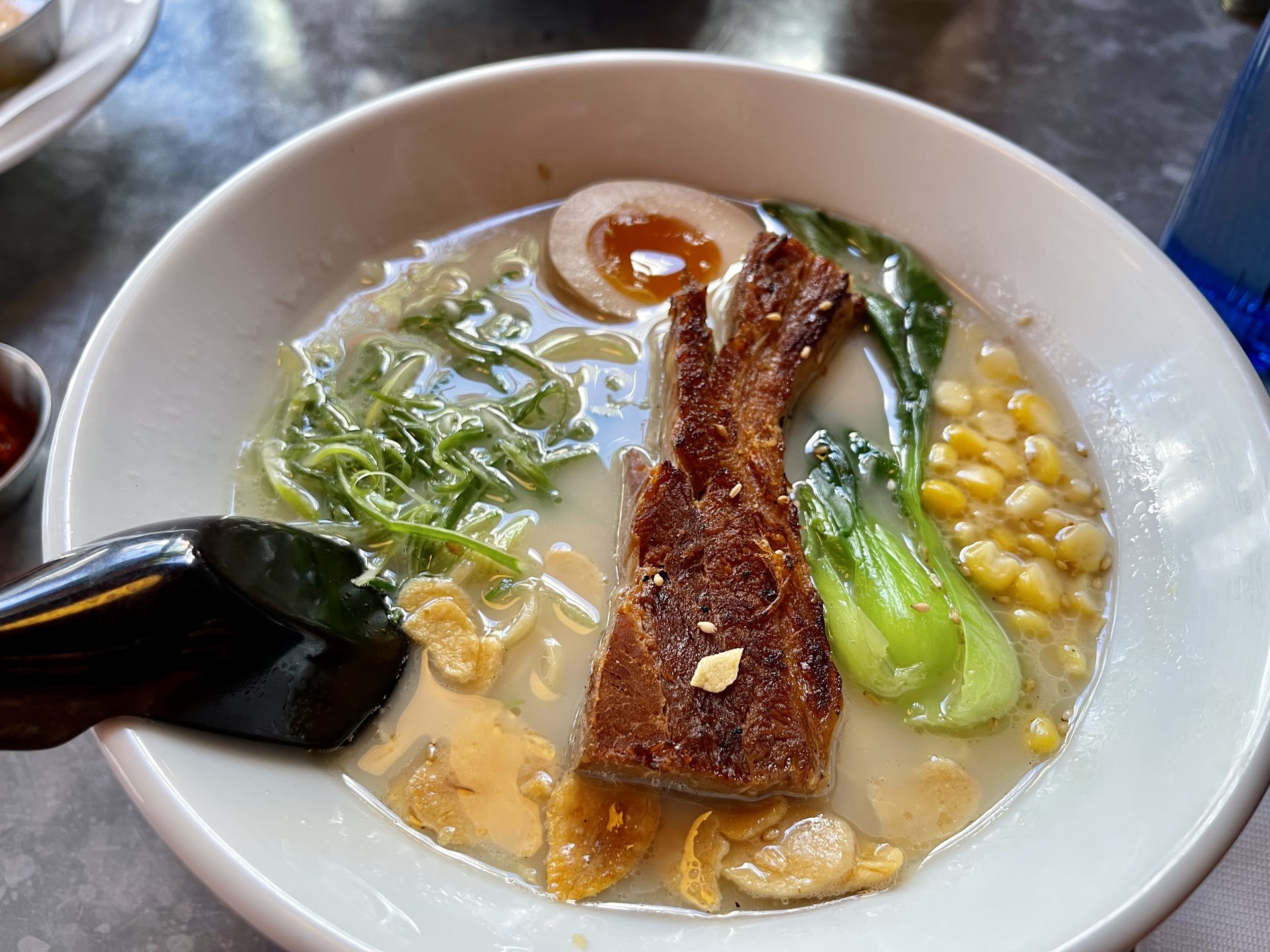 Ramen: so, I donāt eat pork and itās hard to find ramen thatās not pork based or have pieces of pork. I came here because not only did they have chicken ramen, but creamy chicken. Their ramen also came with stuff I like inside that I didnāt have to pay extra for: corn and egg and spinach/greens. The noodles were great, chicken tasted good and nicely grilled, and the broth was amazing. This ramen was so good and made me happy! Pretty delicious and I would come back.