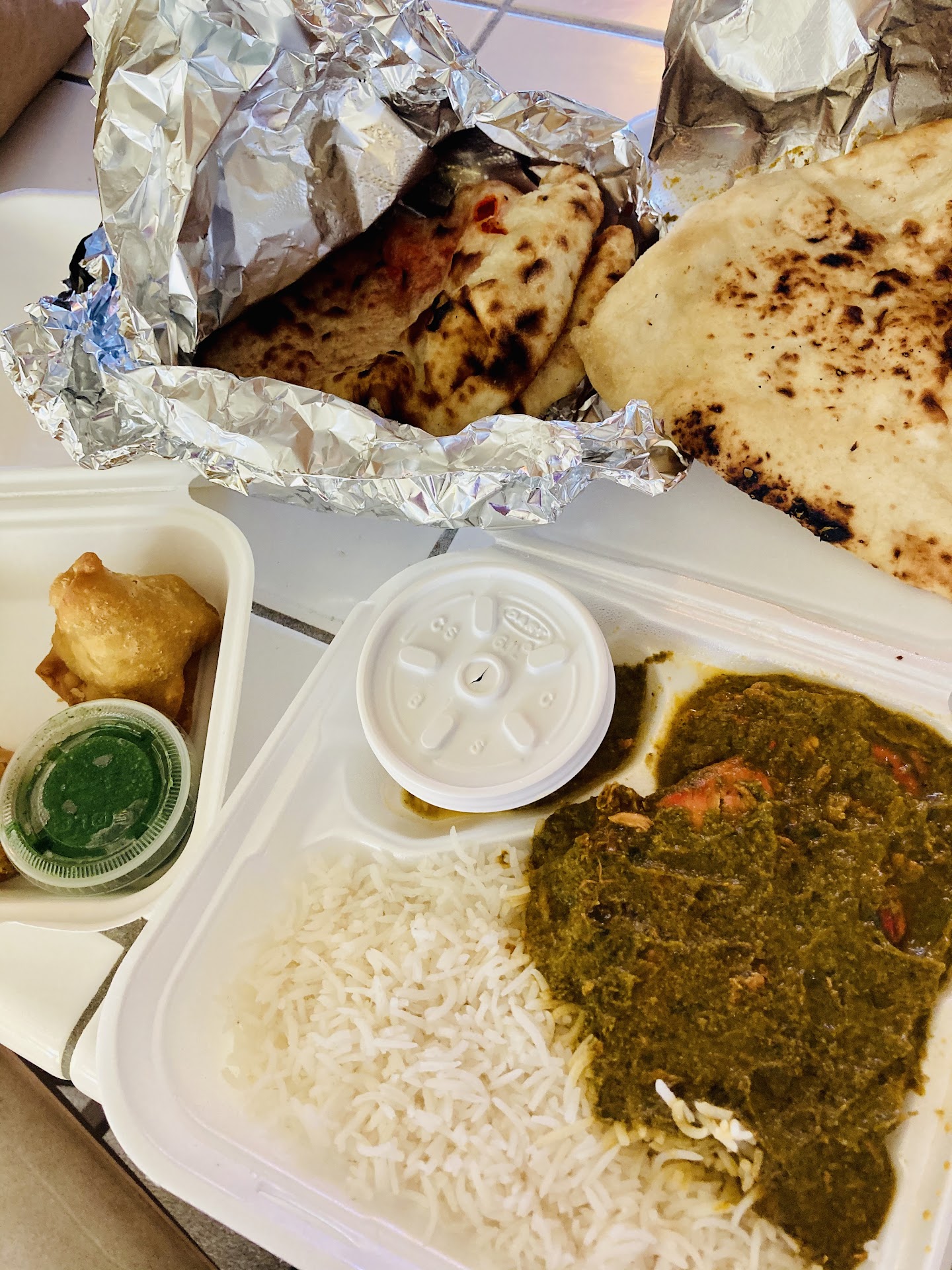 When I was done with the samosas (ie quickly - I inhaled them!), one of the ladies behind the counter calls me and presents me with freshly baked naan bread! Oh, thank you, auntie! It's just what I wanted! My samosas were delicious with tamarind chutney.