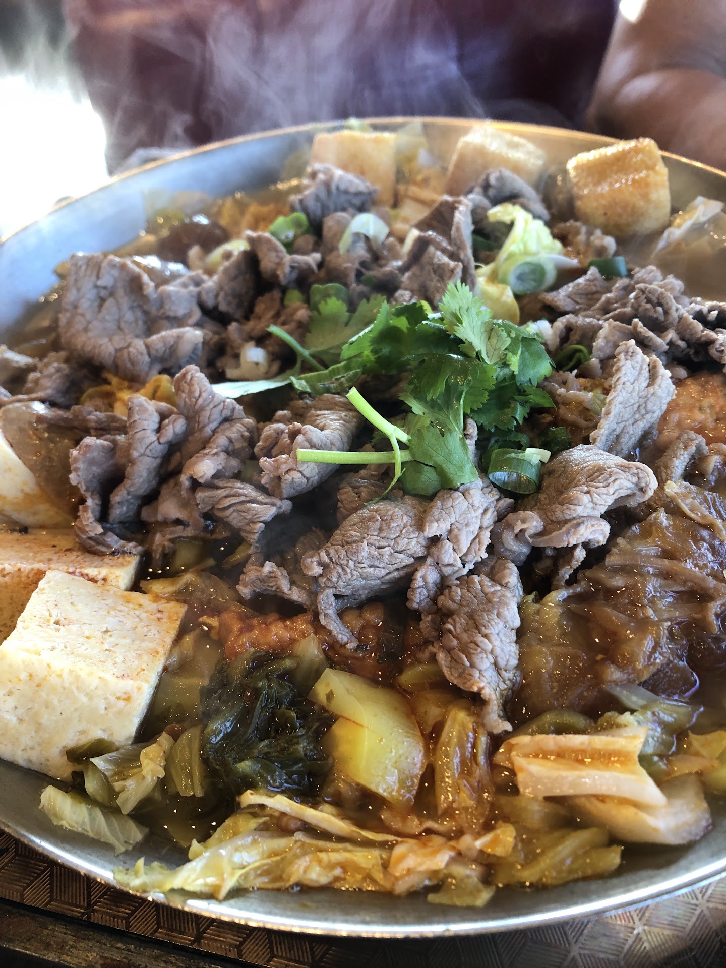 Read moreA great place to go for your personal hot pot! Also perfect for warming up on cold days. There's a nice selection of different hot pots you can order and we have tried the beef, lamb, curry flavor, stinky tofu, and the kimchi dumplings. A lot of the same vegetables and fish balls can be found in each of these pots so the main difference between the pots is the meat and broth. Out of all the ones I have tried, I still enjoy the classic beef hot pot the best. There's a generous amount of meat. The dumplings in the kimchi pot were also pretty tasty. For each pot, you also get the option for rice or vermicelli. Since many of the pots already come with some vermicelli, I usually go with rice. Also, the food is pretty hot so I like to cool a lot of it in a separate bowl before eating. You can also turn off the fire in the pot so it stops boiling. If you run out of broth, you can get...