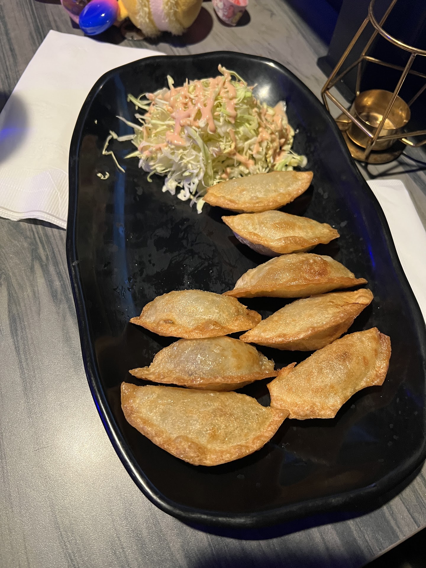 I was craving some Korean food late in the evening and found a place open until 1:30am, so I dragged my friend to try it out with me. When we arrived, the waitress barely acknowledged us, leaving us to stand awkwardly at the door until she finally waved us to a table at the back. The restaurant wasn’t crowded, so we were surprised by the waitress's short and upset demeanor. It took a few minutes for her to bring us menus and water. After we ordered, we decided to draw on the blackboards covering the walls around our seat.