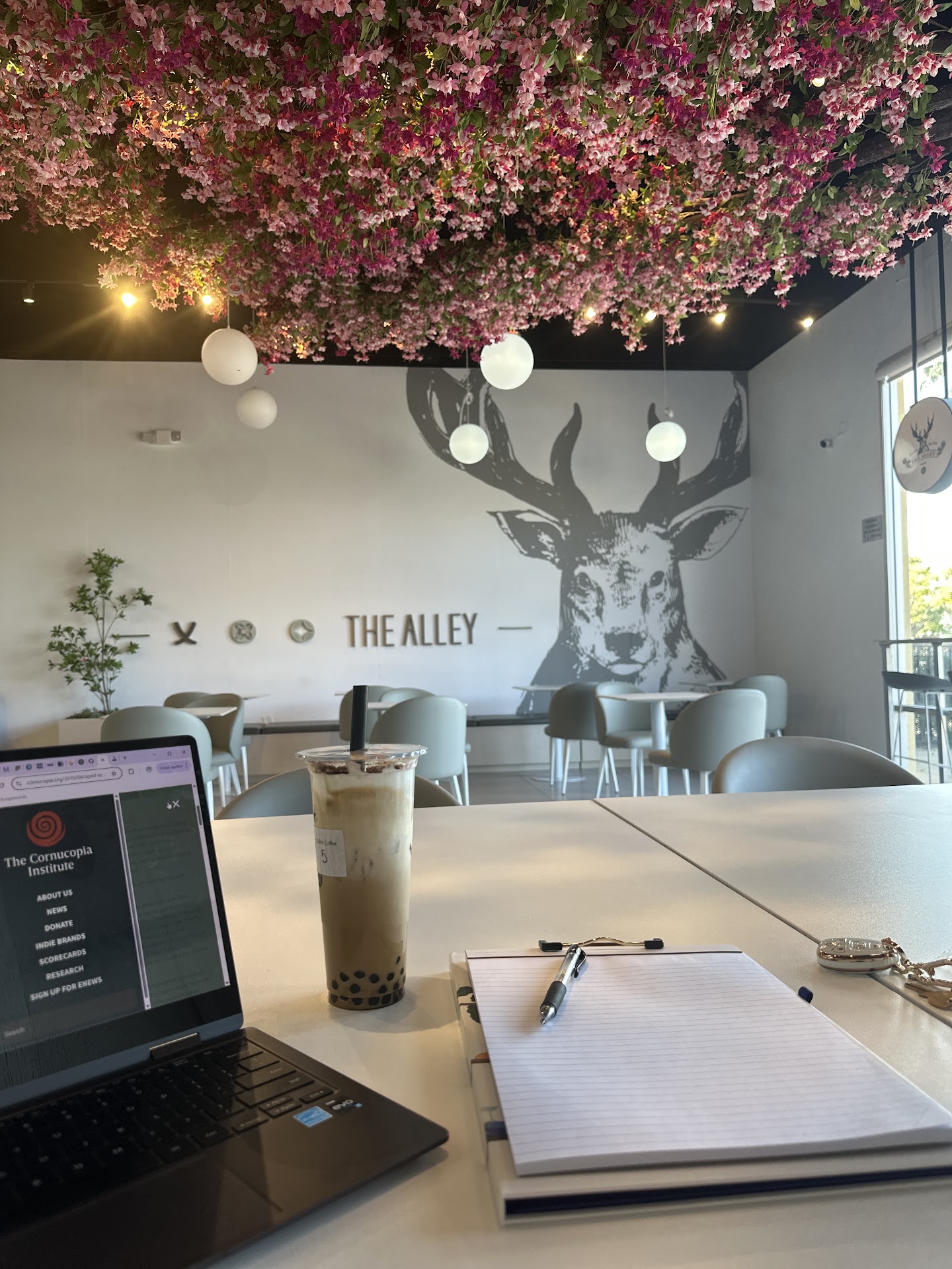 Read moreI've never been to The alley before but I think I just got a new favorite Boba place. I walked in and was immediately hit with the nice aesthetics and decor of the establishment. They have a really cool fake tree that has pink leaves which extends over the roof. The only problem with the decor is that said tree does cover the main menu screens, but they have printed out a menu at the counter for you to look at instead. The service was great and the employee was really kind and helpful with my order. Prices are good for how delicious the drink I got was. Definitely recommend anyone...