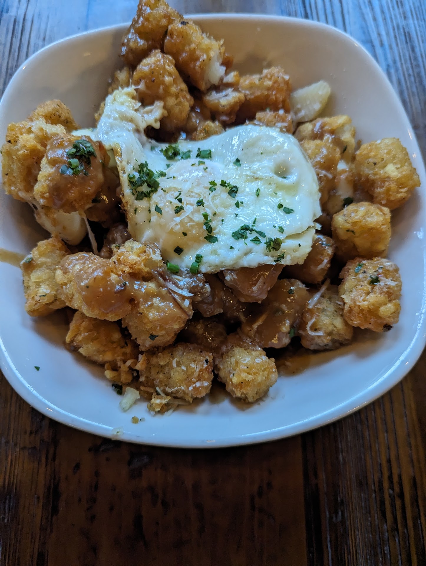I ordered the “seafood roll,” which is a new take on the previously popular lobster roll, and the flavor was good but the corners of the brioche bun were sadly inedible. Stale old bread just becomes too hard/chewy to digest.