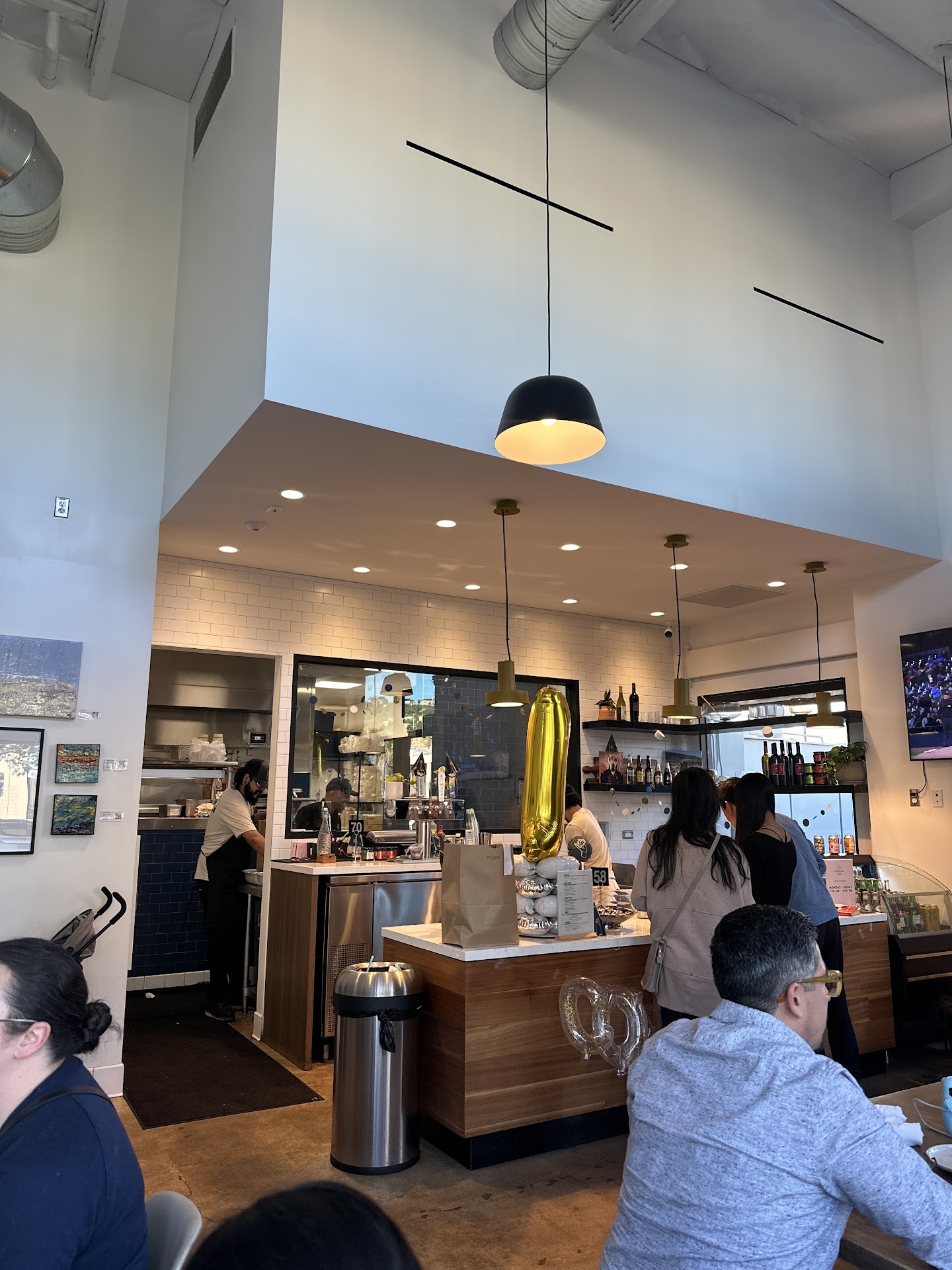 Because I had my dog with me, I waited just inside the store door. After the line at the counter cleared, he didn't look up to see me waiting but instead started filling water bottles. It was only when I walked to the counter that he looked up, saw me, and looked at the delivery order that he changed his routine. (IMO, he should have first looked for any table delivery before filling water bottles.) I had to ask him then if that order was for my table. He confirm it was. So I took it.