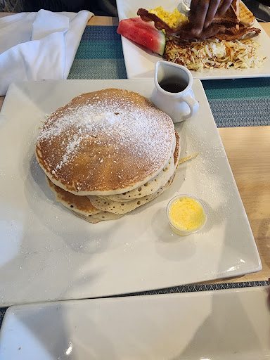 We waited about 55 minutes for our food without any updates or check-ins. When it finally arrived, it was disappointing. We ordered the pancakes with eggs and the chicken and waffle. The eggs were cold with an absence of seasoning, the pancakes were dry and lacked flavor (though at least they were hot), and the chicken and waffles were only lukewarm with little taste. The waffle itself was dry and hard.