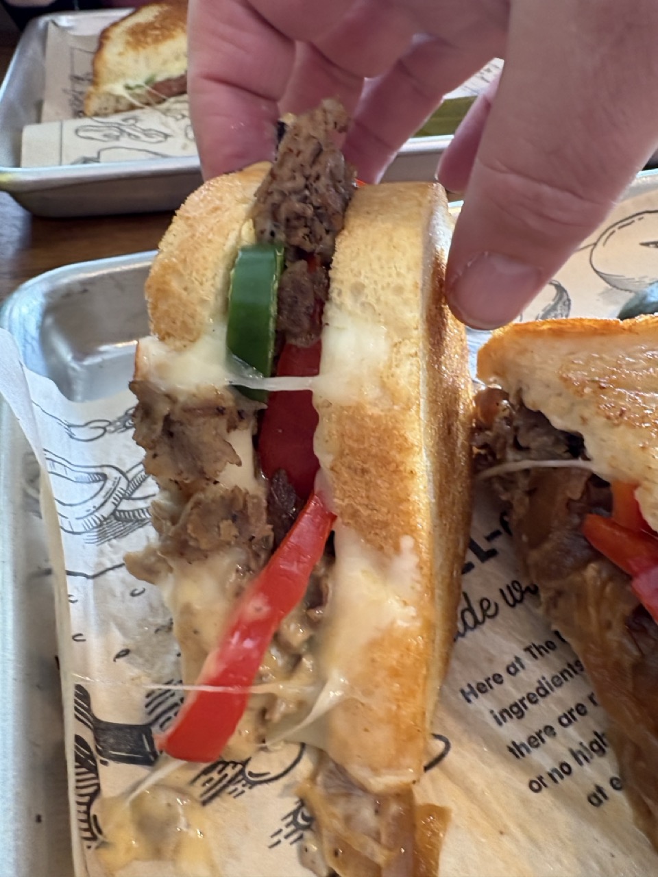 Read morePRETTY GOOD ! My wife and I decided to give this very new burger joint a try last Saturday evening before heading to the AMC La Jolla 12 to see Blade Runner 2049. I checked this place out before it opened a couple of weeks ago and it looked as though they were intending to take burgers and grilled cheese sandwiches into the fast food stratosphere. We walked in around 5.30pm and stood there for a few minutes analyzing the menu board. My wife ordered the Italian Job while I liked the sound of the Spicy Mission Melt Burger + a serve of Sweet Potato fries. A guy named Ryan was looking after us and he doing a good job at that. They give you a buzzer to take to your table….similar set up to another well known burger chain. The decor is bright and cheery, a big screen TV up on the wall, 2 gender neutral bathrooms, plenty of tables inside and outside on the patio. What more could you ask for ? Our dinner order only took a few minutes and we were buzzed. My burger looked astounding, bigger and more luscious than I expected. My wife's grilled cheese sandwich looked kinda tiny compared to my huge burger with the extra fries. Who said size doesn't matter ? My huge burger tasted very good...the large bun was very fresh and the grass fed beef patty tasted outstanding + the tomato sauce added a flavorsome zest. My wife loved her Italian Job grilled sandwich and noted that there was a garlic flavor which made the cheese / mushroom filling even more tasty. While I was busy chomping away at my burger & yummy fries a friendly guy wearing a The Melt embossed jacket walked by us and said hello. Next minute we are having a friendly chat with this guy named Herb who happens to be a big shot with The Melt...something like in charge of all the stores in California. He was a real nice guy and very switched on in this type of business of course. We were very impressed with the fast efficient service, meal quality and serve size, store cleanliness and the overall upbeat vibe of the place. We don't usually frequent fast food joints but this one is definitely a cut above the rest. We'll be back to try some of the other interesting choices...