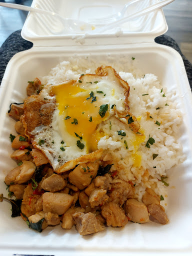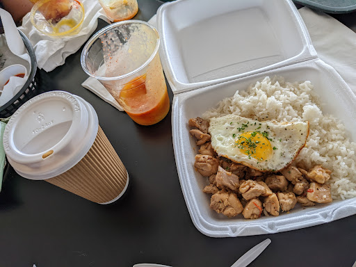Try out this place the neighborhood cafe. It's bomb and cheaper than most place. A huge plate of food is about 7-8 buck and I got a vietnamese coffee with boba for 4 buck. This place is awesome and nice workers who brought food to me which I don't see ever. It's a collab with UPAC that's why they're awesome. Enjoy! You won't regret. Sorry no pic of the vietnamese ice coffee, I drank it all in like 5 minutes. Lol 20 buck for two days worth of food. Heck yes!