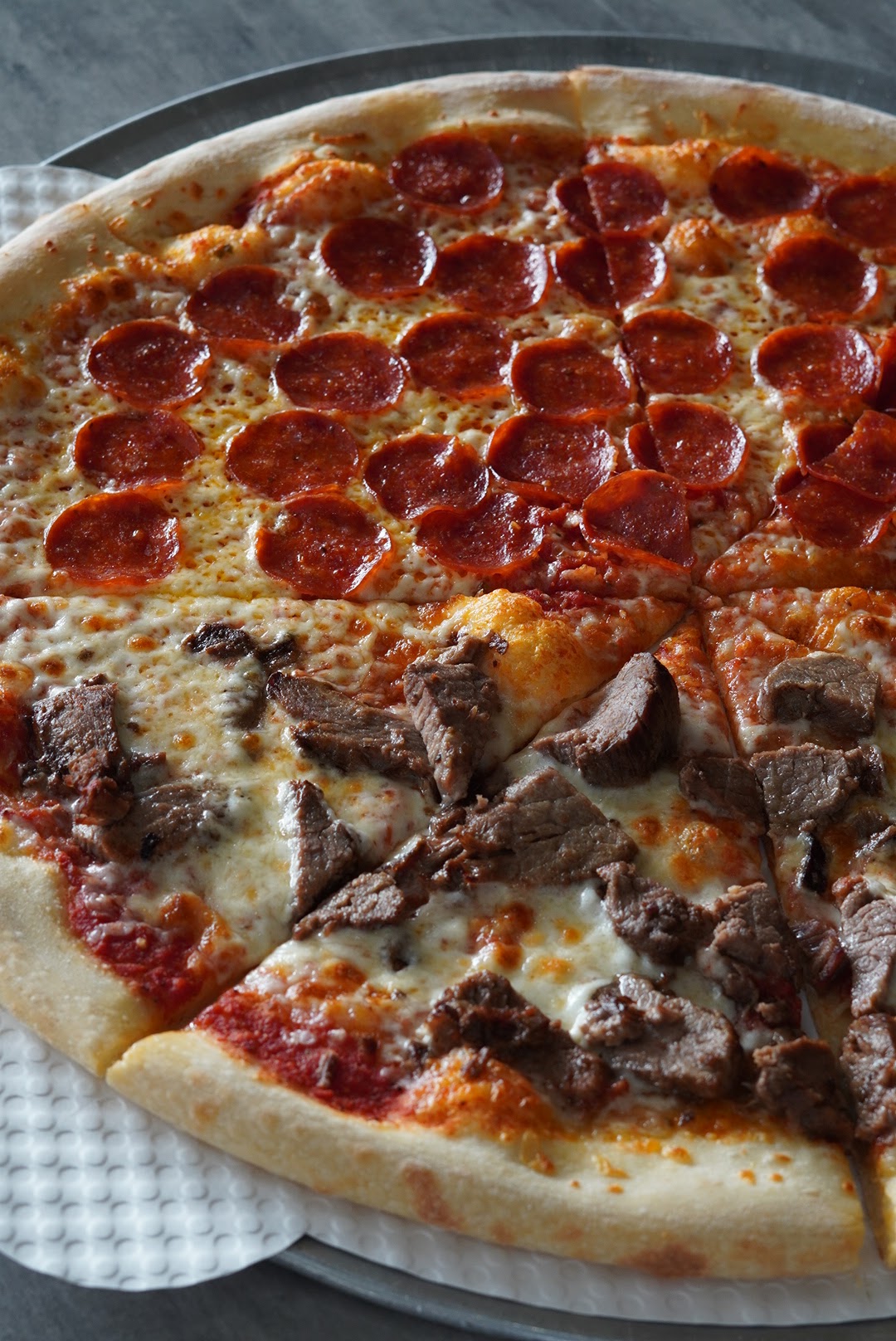 As you take your first slice, the aroma of freshly baked dough wafts through the air, teasing your senses and building anticipation. The crust is soft, yet perfectly crisp on the edges, providing a sturdy foundation for the explosion of flavors to come.