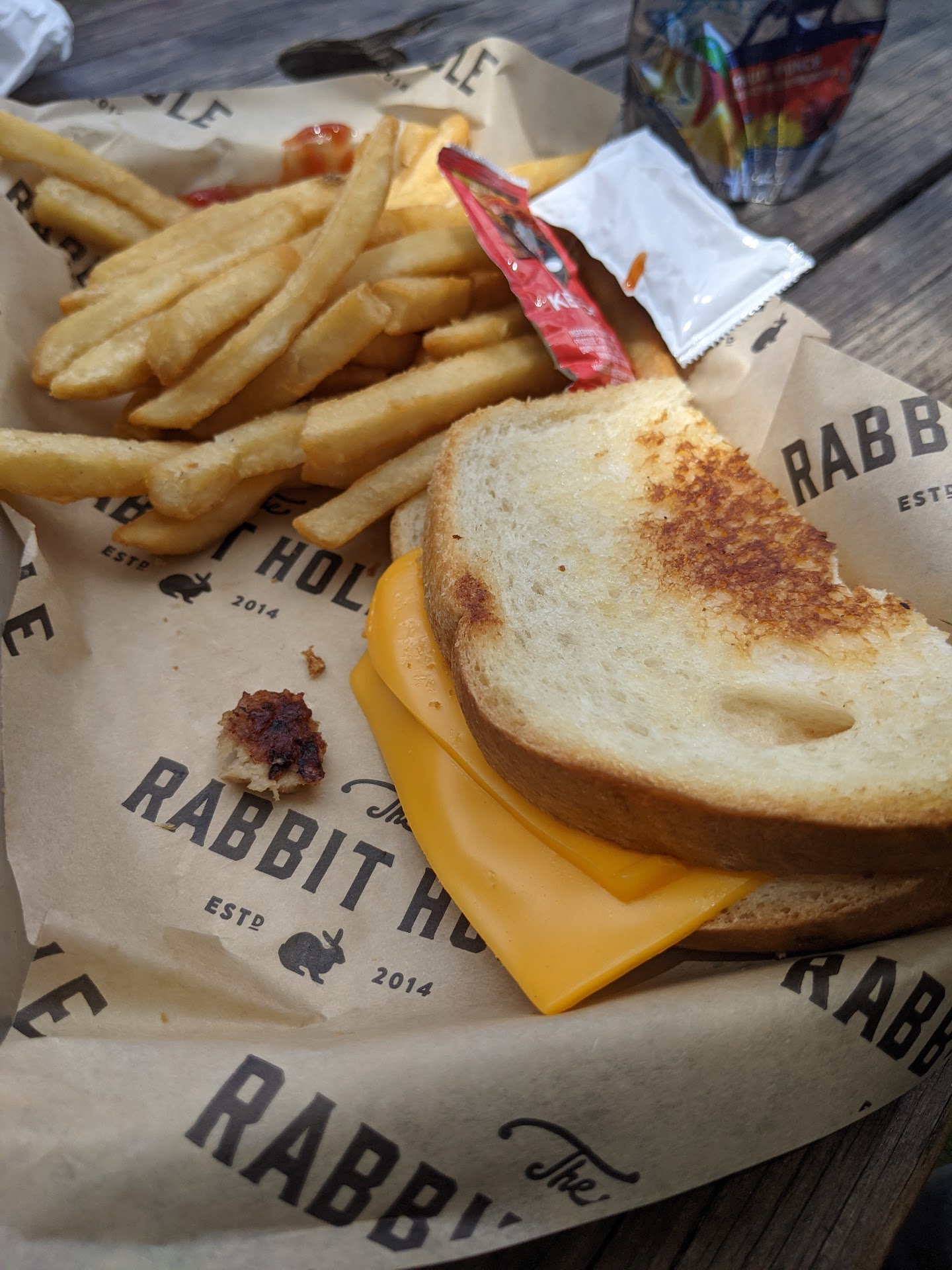 My kids got grilled cheese and fries. It literally looked like they just tossed two slices of Kraft cheese on there and called it a day. That's MY recipe thankyouverymuch lol. The fries were solid on both.