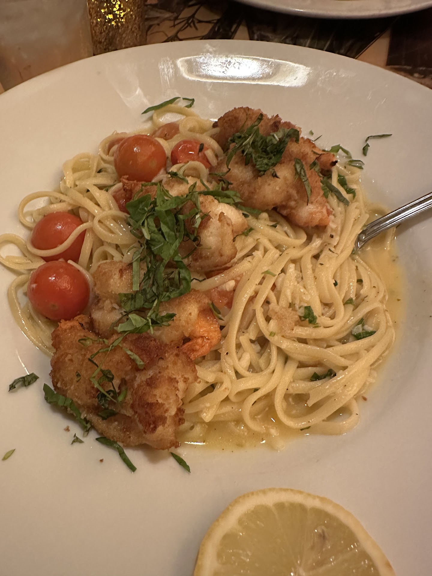 Read moreVisiting SanDiego from the PNW--Excellent service, quality food, and large portions. Mediterranean salad (chicken on the side) was a huge hit with my vegetarian mom-- my dad and I also had a taste, it was delicious. Dad got the calamari, it came in a cutlet form with pasta on the side; he really liked the seasoning and fresh taste. For myself I got the angel hair pasta "capellini angelino" with chicken added. It had just a dash of marinara sauce, and: olives, basil, and grape tomatoes. It was lightly flavored and tastes great with parmesan cheese and one of the great garlic bread slices. By the time I was full, the plate still looked untouched-- so much food. Wanna know the best part? We had already ordered a vegetarian pizza, (it was watching us eat our other entre, lol) we even asked them to add tomatoes and artichoke, mom managed two slices after the salad...also delicious. I'm actually in a food coma, as soon as I've come to, I'm...