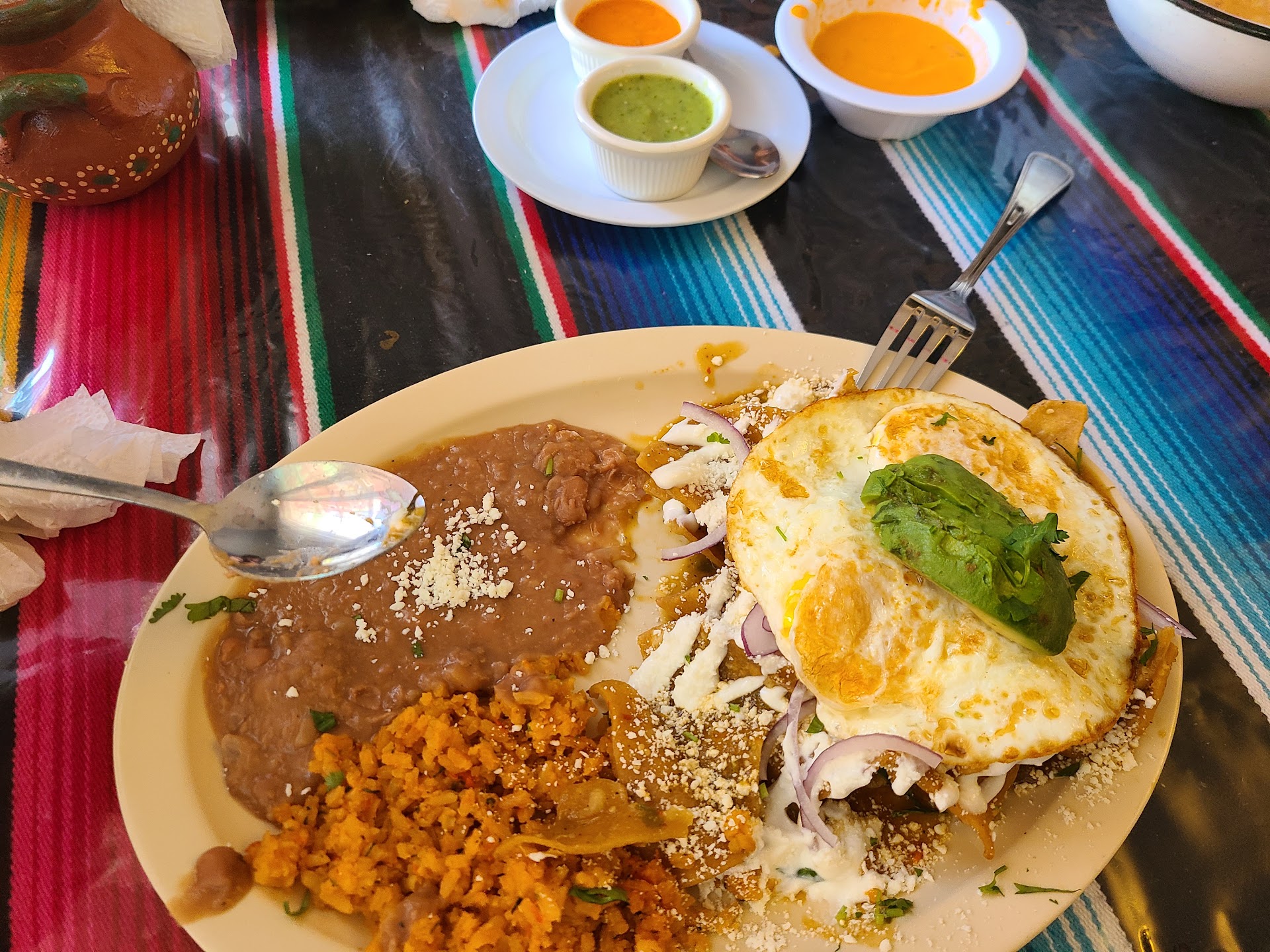 I got the chilaquiles. Boy were they good. My favorite part: NO YELLOW CHEESE. it is a pet peeve of mine when Mexican restaurants call themselves authentic, but then proceed to put yellow shredded cheese on top of their beans. Yellow cheese is not authentic to Mexican food.