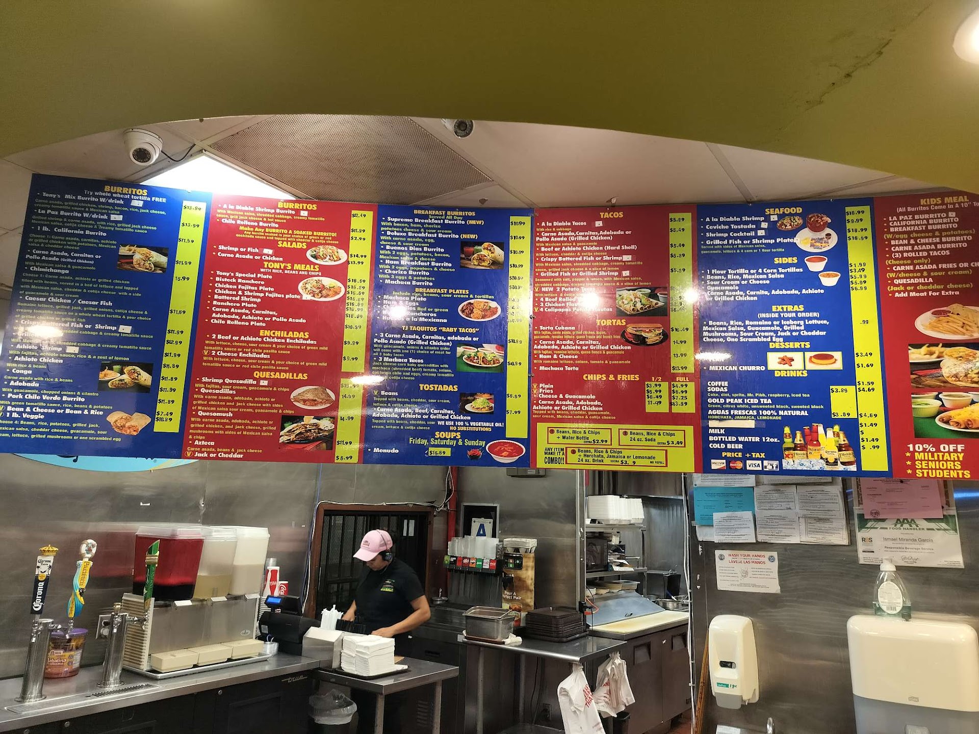 Read moreThis place is one of my favorite’s to go to for lunch. Their half order carne asada fries is definitely a filler. Or their Tony’s mix burrito almost like a surf and turf .. has chicken, asada, rice , salsa , shrimp, cheese and comes with a drink. This doesn’t disappoint. Or there taco Tuesday! Who doesn’t enjoy tacos right! I pretty much order quite of few things here and was satisfied all around. The customer service is great. They have a drive thru and you get your food timely. You can also dine inside if you have time to do so. I have already recommended everyone I work with and...