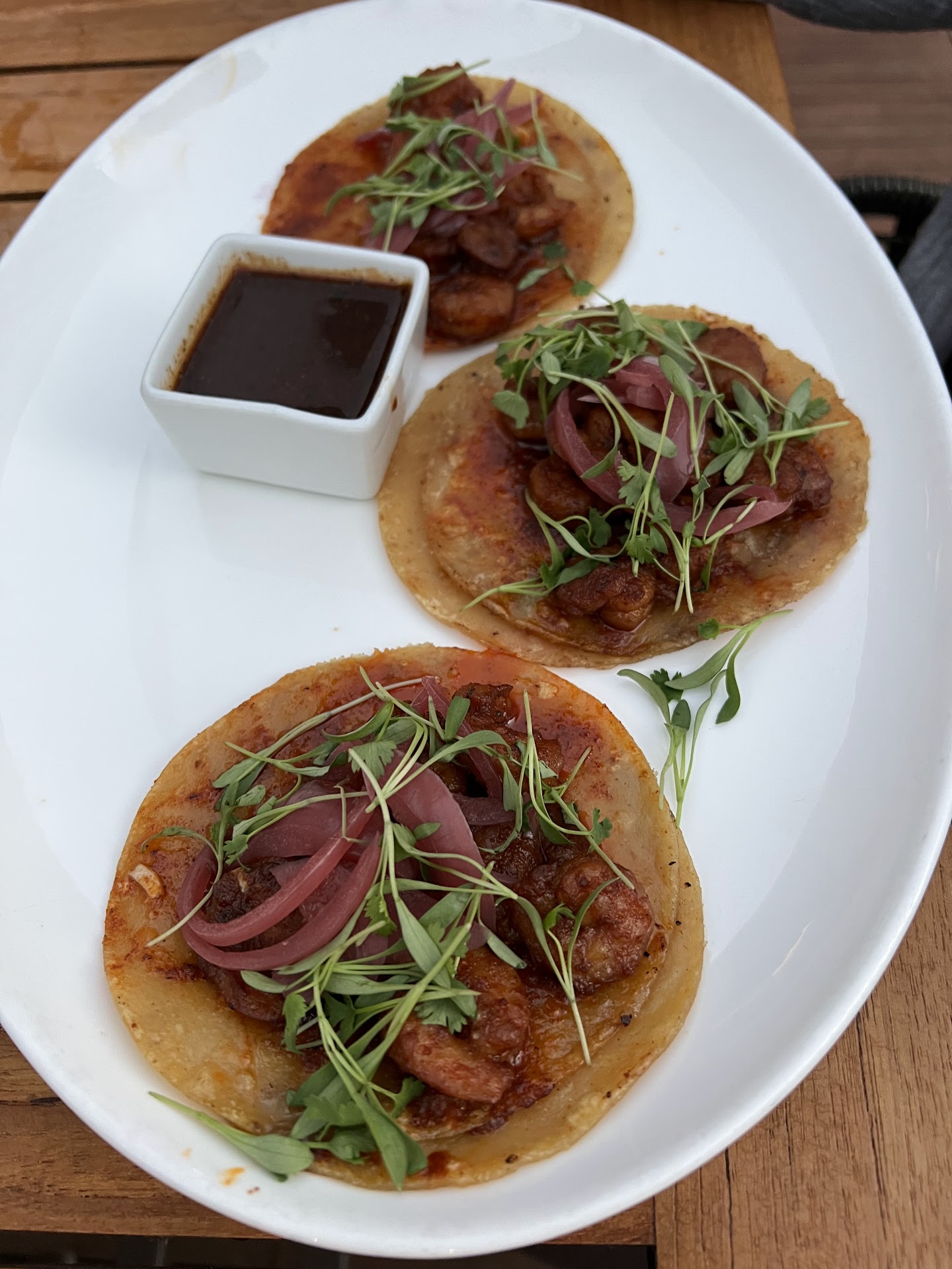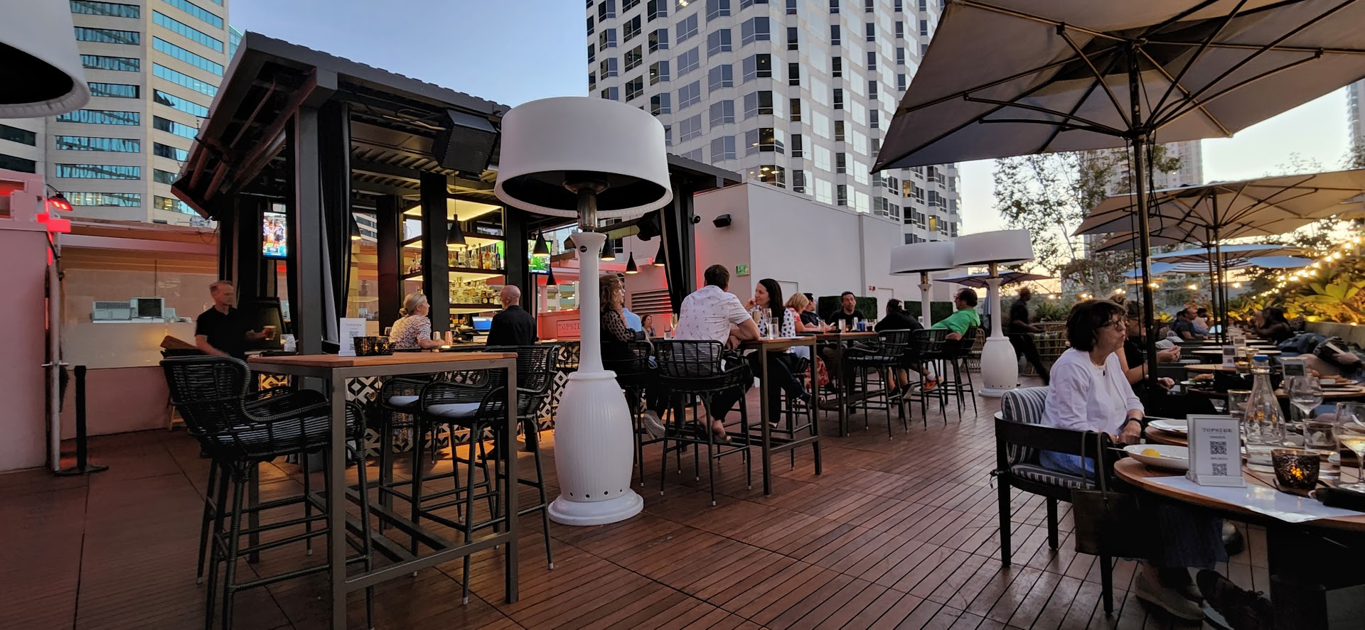 Read moreMet some friends here for dinner. A really nice space in the building terrace. Comfortable seating and heaters for those cooler days. I ordered their plant based burger and it was good. I really liked the fries. My wife got the shrimp tacos and she liked those as well. The salmon came topped with pesto of pesto and was prepared very well. My wife got a piece of the mastic in her drink. Looked like a lid of some kind. They comped the drink but they should have done more. The biggest issue was it took a long time to get our food and the place was pretty empty. I think the kitchen probably does room service for the hotel. It’s the only reason I can think of why it took so long. We were in our way to catch a flight and made it quite tight time wise. Not sure I...