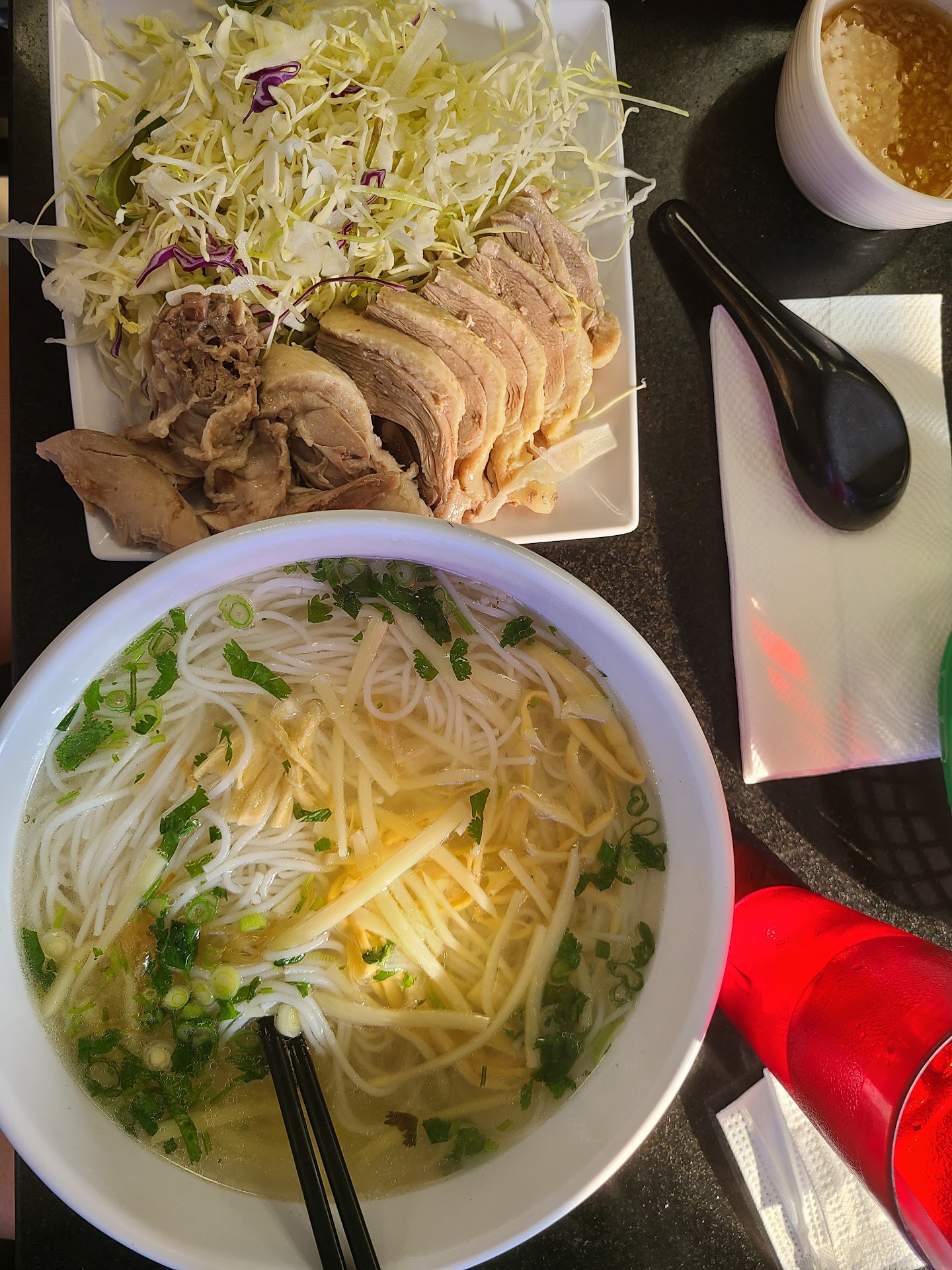 We were visiting from Florida and had to return to this place. One of our favorite hidden gems in San Diego. We have yet to see a bamboo duck soup sold at other South Eastern Asian/Vietnamese restaurants. The salad and light dressing is also a plus. We saw that they added dessert on their menu; so we also gave both the coconut jelly and yogurt a try. The yogurt is tangy/tart-like; while the jelly was fairly sweet, but not overwhelmingly sweet. We will definitely come back whenever back...