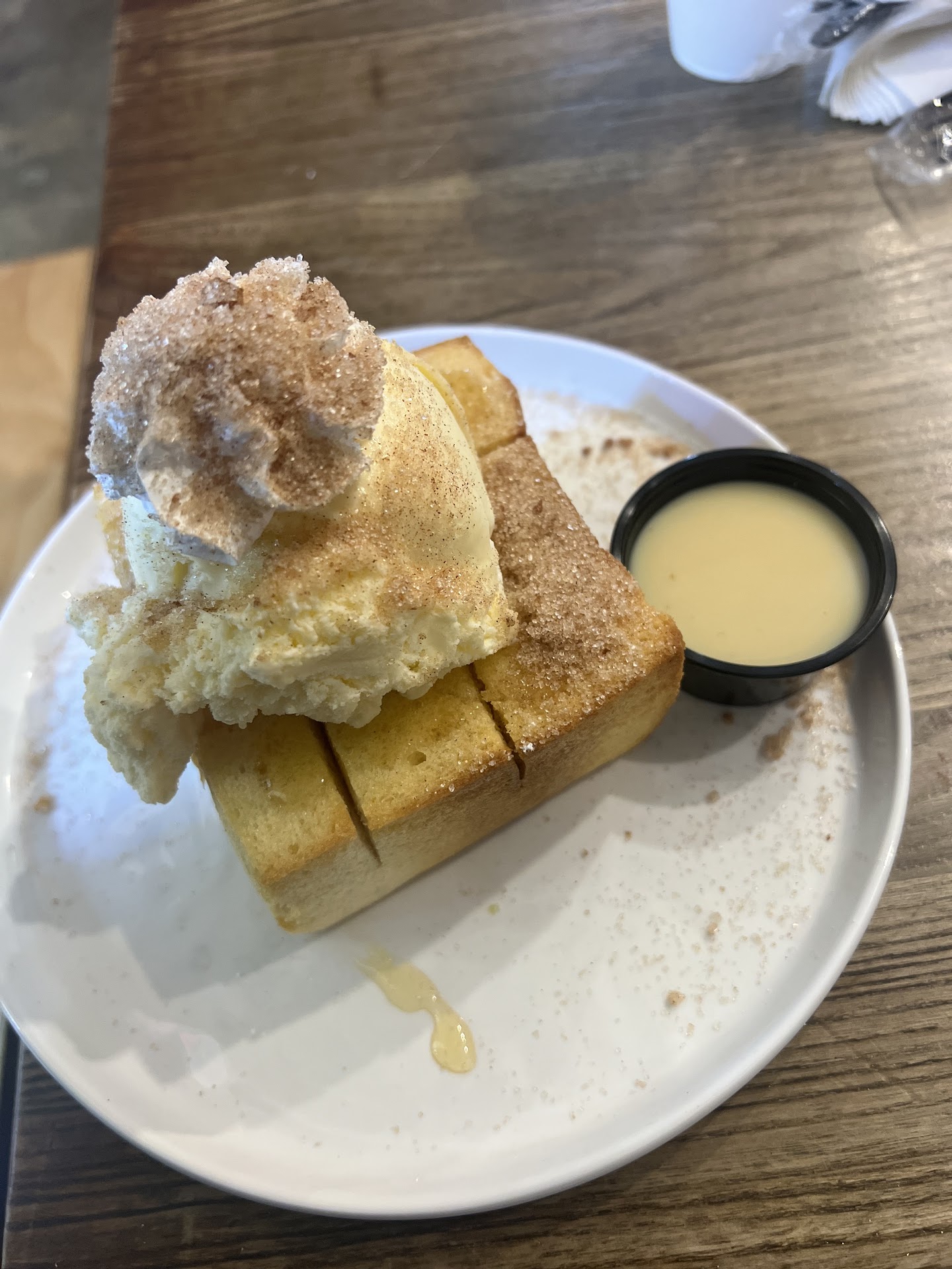 My friend had the Honey Toast with banana and mango with strawberry ice cream and nutella and condensed milk sauce... The honey toast on it's own was ecstasy and totally different style of the same... It's basically a huge thick brick toast cut into sections and with honey inside the toast... The toppings had made the special brick toast even better...