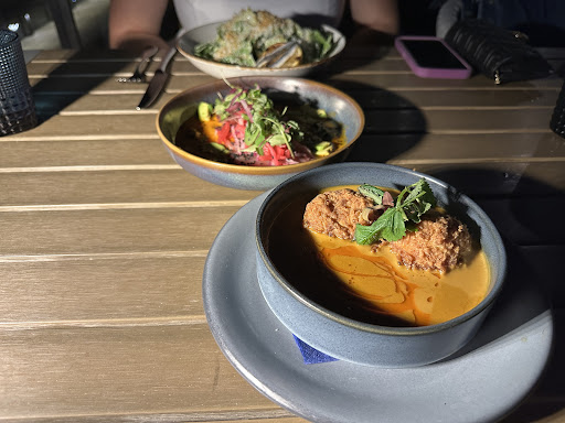 Read moreWe celebrated our anniversary here and everything from start to finish was exceptional. The service was warm, attentive, and set the tone for the evening. We started with the yellowtail crudo, which was vibrant, zesty, and layered with a unique sweet-sour carrot sauce and pickled onions—easily one of the standout dishes of the night. The crab bisque was also very good, with a rich saffron broth and a fried crabcake that made it hearty and flavorful. For our main course, we shared the grilled yellowtail special, served over a creamy corn risotto with truffle, squash, and Shishito peppers. The fish was tender and perfectly cooked, and while the dish had a lot going on, every element came together beautifully. On the sides, the Brussels sprouts were crispy with a tangy, almost buffalo-style sauce, and the truffle fries were tasty though not quite worth the price compared to other options. My wife ordered the Island Oasis mocktail, a passionfruit and pineapple blend that was refreshing and easily a 10/10. To top off the night, the restaurant surprised us with a decadent chocolate ganache cake for our anniversary—rich, indulgent, and the perfect couple of bites to end the meal. Between the rooftop vibe, the great views, and the exceptional service, this was a dinner to remember, and we’re already looking forward to...