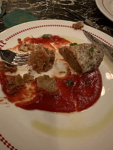 The eggplant parmesan was incredibly tough and rubberyâsomething Iâve never encountered before. The sauce tasted like ketchup, and I wish I was exaggerating. My husband ordered the Oscar. The Impossible meat was fine, but the âcrabâ cake was absolutely awful. I honestly have no words for the flavorâit was that bad.