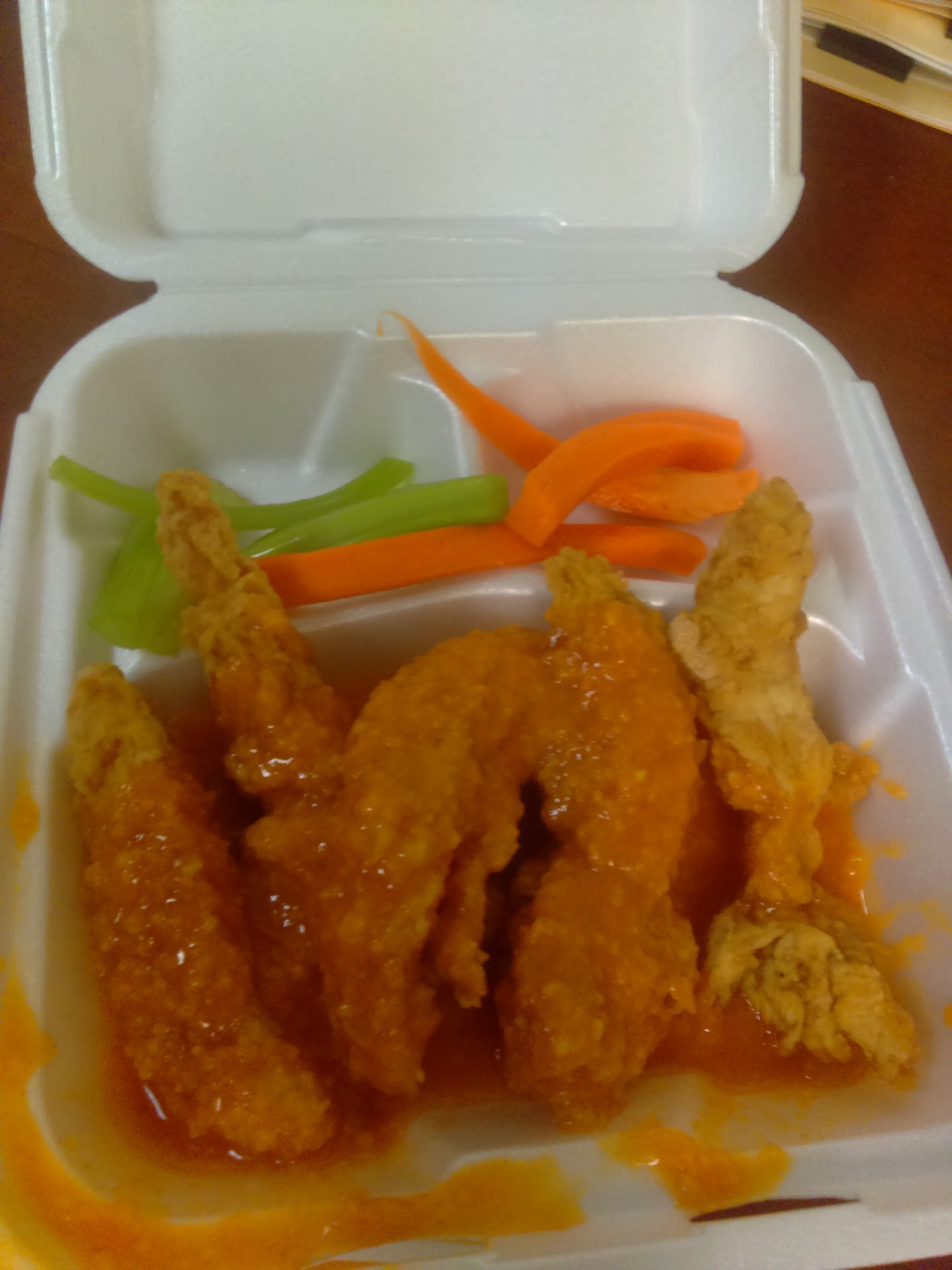 Onto the food... They have a pretty good menu and prices are very reasonable. They offer more then just wings. They have some massive burgers and the regular fried food appetizers. They also have wraps that look really good to. I took the whole family so we ordered a few different items. My oldest daughter got the buffalo chicken fries (they offer them in small,med,large) she opted for medium BC she said she was starving. Well they were massive for a medium and she now has lunch and dinner for tomorrow. I stole a few bites and they were great. The fries fresh and hot and perfect amount of chicken and sauce. Highly recommend you try these. The other two split the $5.99 5 piece chicken tender and 3 bread stick combo with BBQ sauce. The chicken strips were very big. I was thinking for $5.99 they would be those little chicken finger things you get at some other places. Nope they were all very large moist pieces of chicken with just enough BBQ sauce. The bread sticks were fresh and hot with a nice sprinkling of parmesan cheese. They were a huge hit at the table. Wife and I got the 15 Wing and made it a combo. Came with 5 bread sticks and drink. We chose 3 flavors. Good old fashion medium Wing sauce. It was delicious with right amount of tang and heat. Second choice was tropical thunder. It was sweet with pineapple hint and a massive heat on the back end but not over powering. Definitely had us saying "what do you mean you people" sorry for cheesy pun I had to with that name. Last and by far the favorite was mango habanero. Such a sweet flavorful mango beginning and then the habanero comes in and joins the party and then finishes it!!!! Was so addicting and oh so hot but in a good way. Highly recommend trying them if you're a fan of the heat.